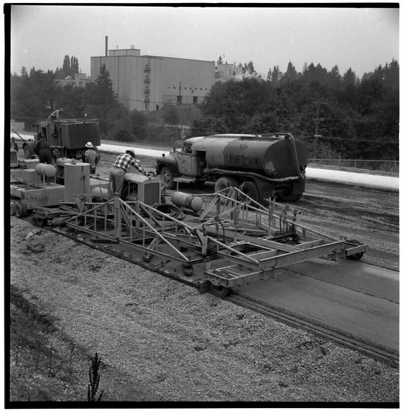 Negative, sheet film. 2 x 2 b&w. Building Interstate 5 freeway around milepost 102, Tumwater.