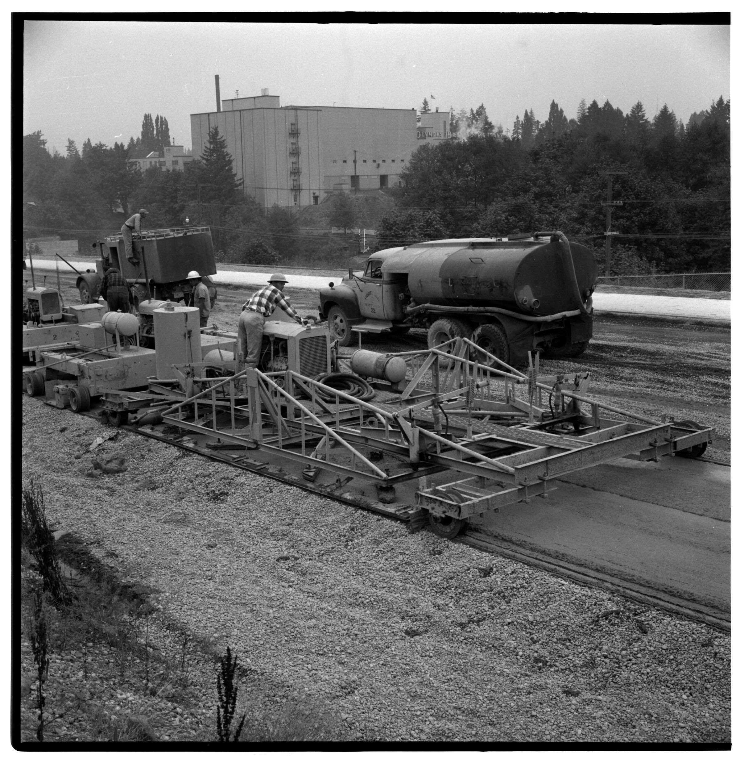 Negative, sheet film. 2 x 2 b&w. Building Interstate 5 freeway around milepost 102, Tumwater.