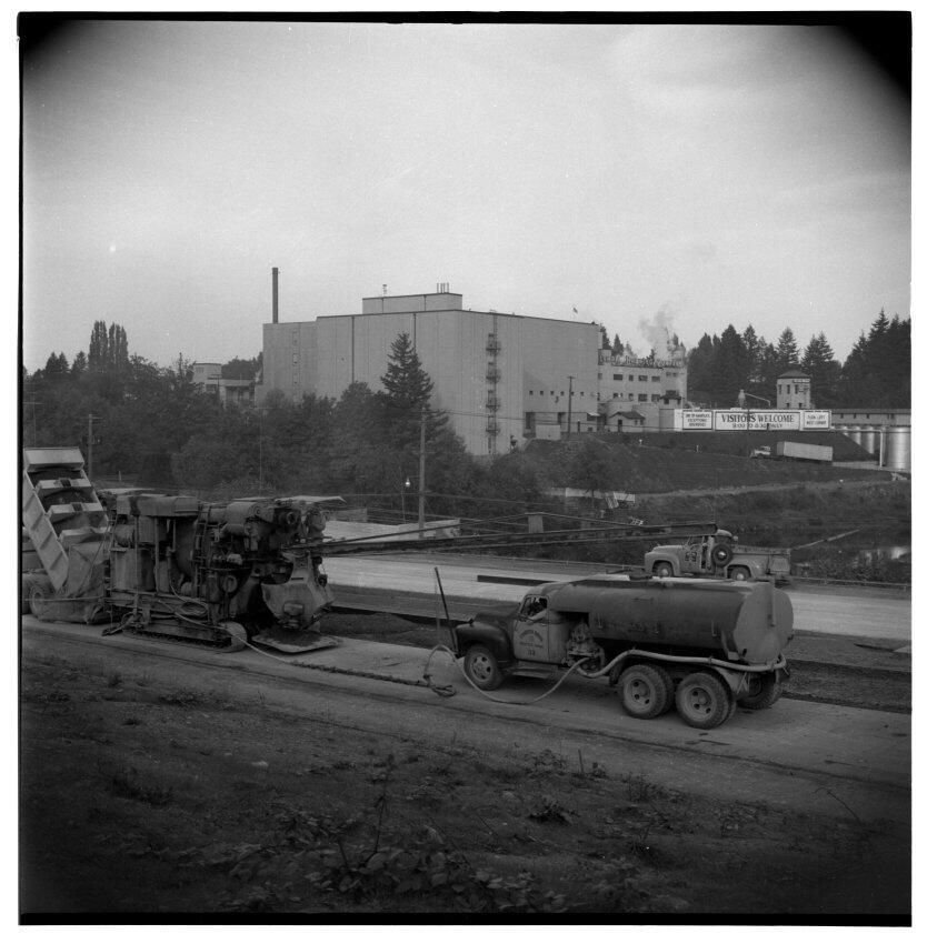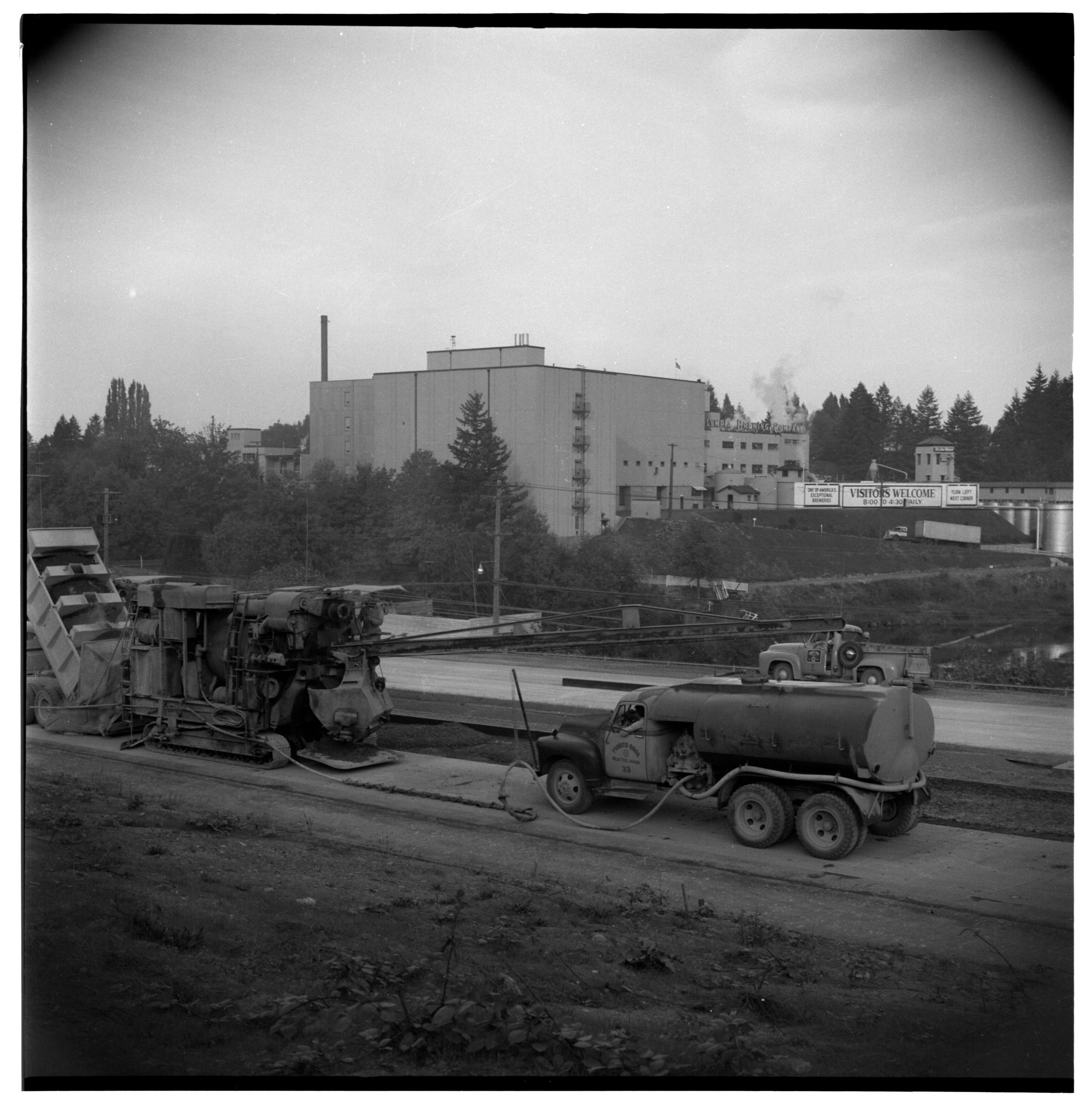Negative, sheet film. 2 x 2 b&w. Building Interstate 5 freeway around milepost 102, Tumwater.