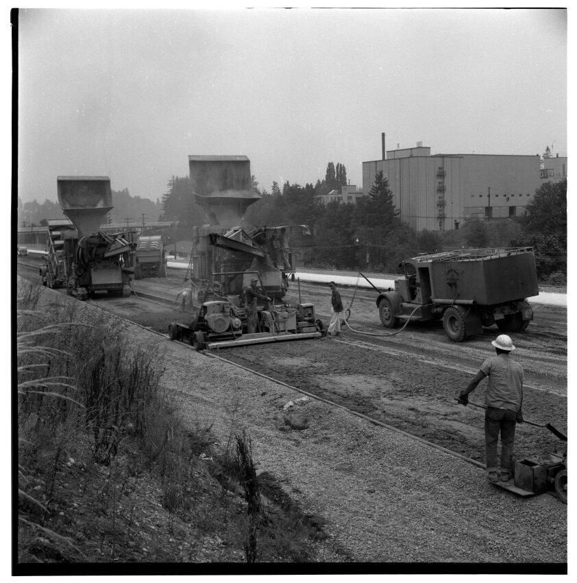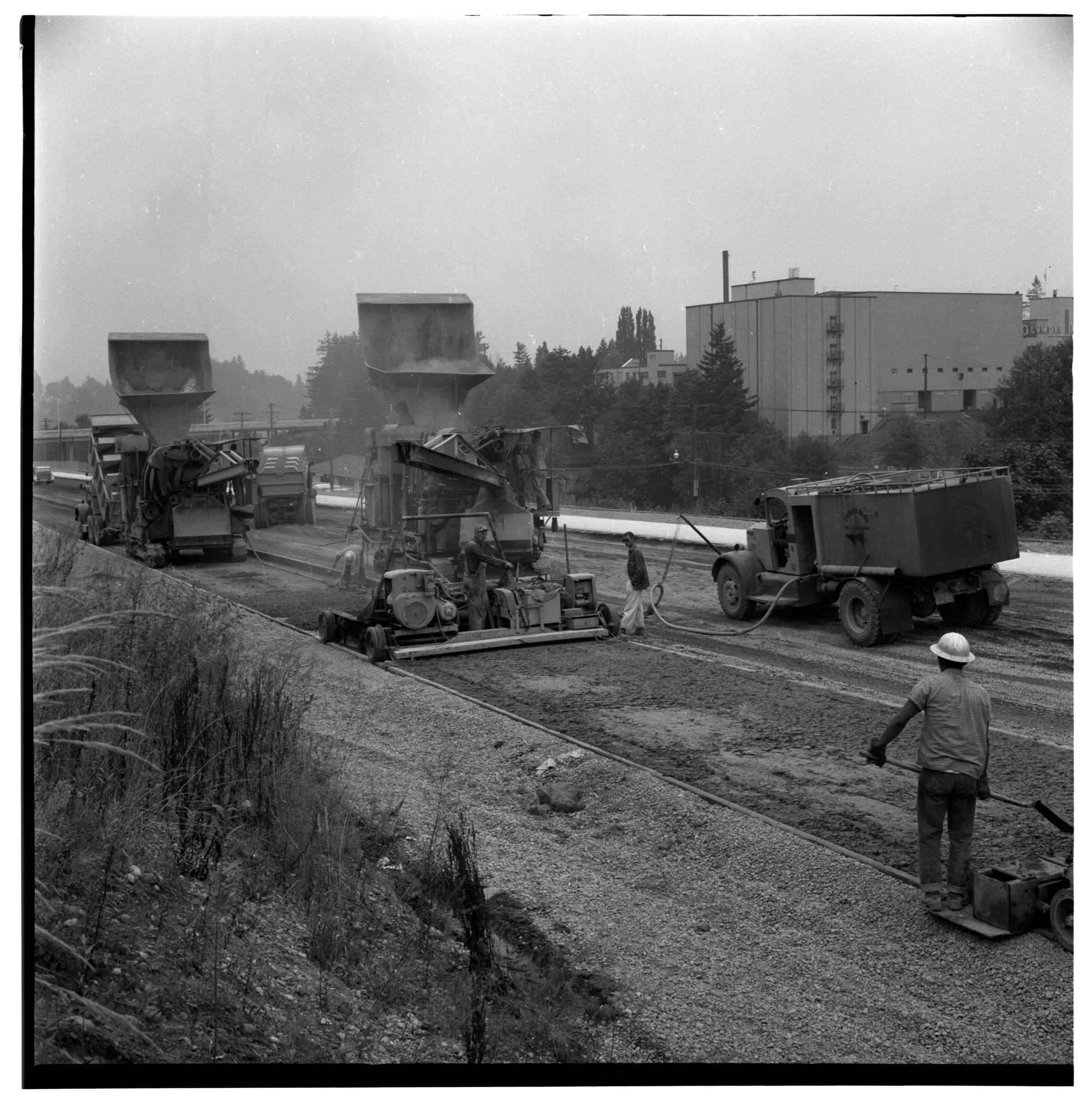Negative, sheet film. 2 x 2 b&w. Building Interstate 5 freeway around milepost 102, Tumwater.