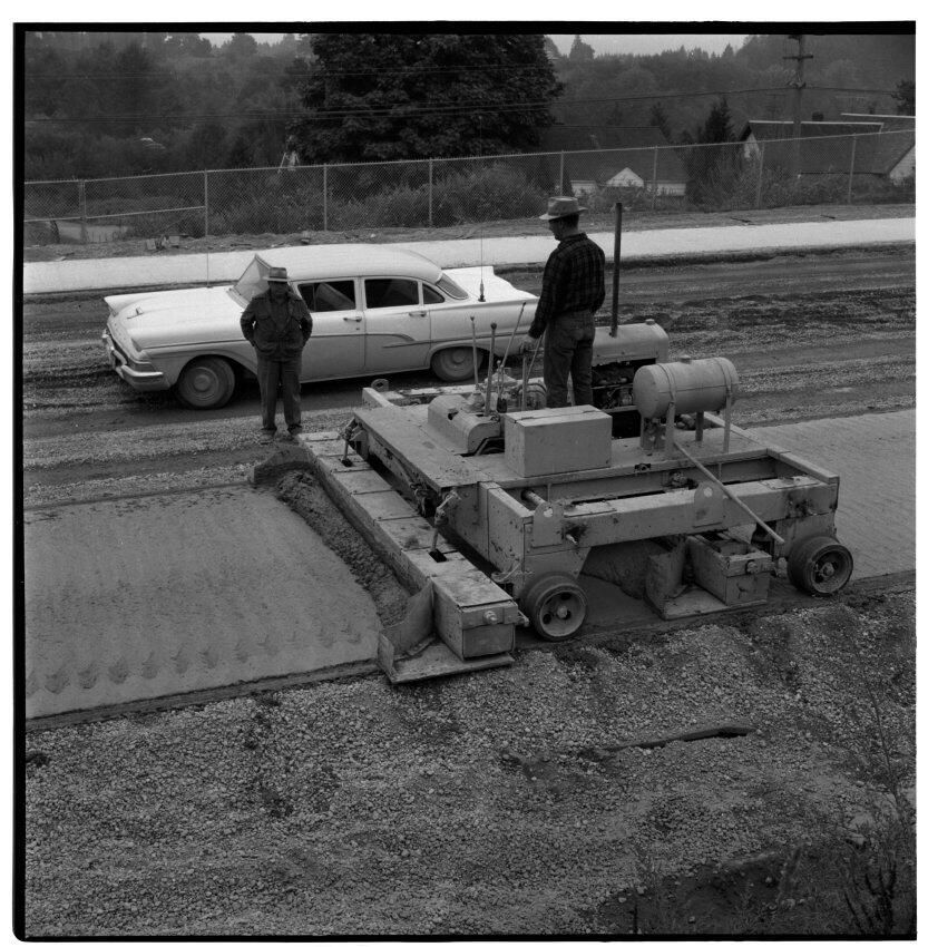 Negative, sheet film. 2 x 2 b&w. Building Interstate 5 freeway around milepost 102, Tumwater.