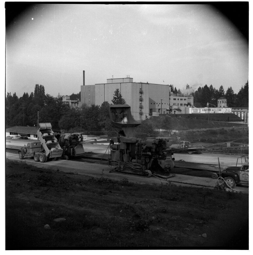 Negative, sheet film. 2 x 2 b&w. Building Interstate 5 freeway around milepost 102, Tumwater.