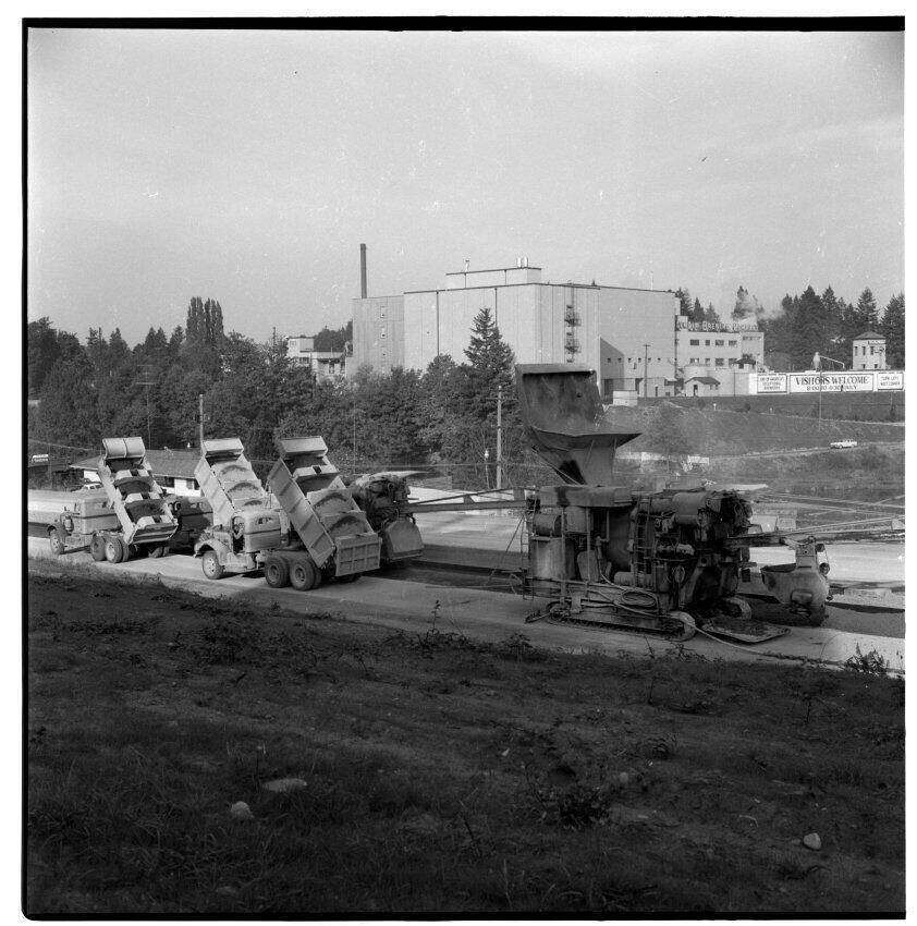 Negative, sheet film. 2 x 2 b&w. Building Interstate 5 freeway around milepost 102, Tumwater.