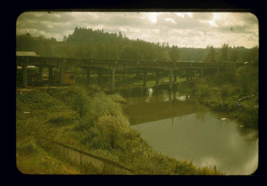Negative, sheet film. 1 x 1.25 positive. Carlyon Bridge across Deschutes River, looking southeast.