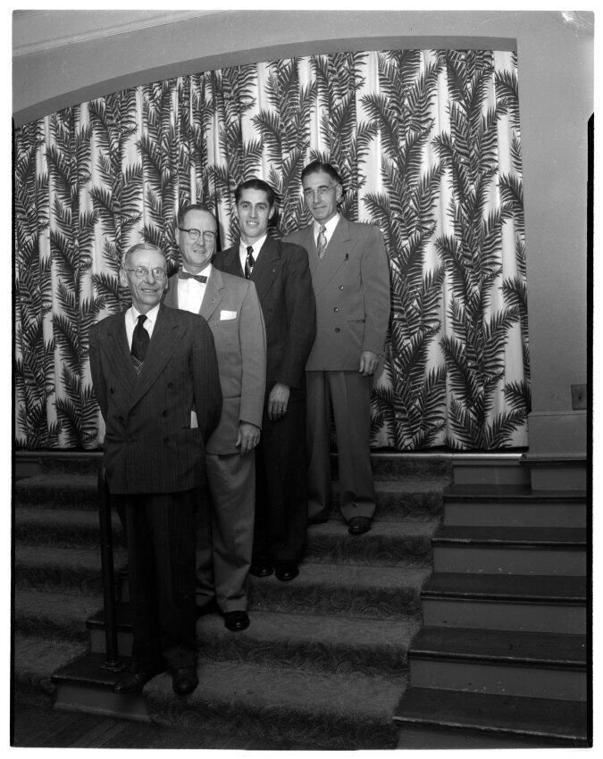Negative, sheet film. 5 x 4 b&w. Professional associations. No. 253. National Association of Practical Refrigerating Engineers. Receipt of charter. No ID on men.