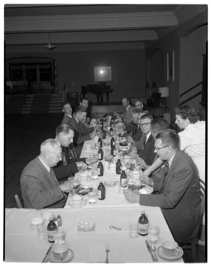 Negative, sheet film. 5 x 4 b&w. Professional associations. No. 253. National Association of Practical Refrigerating Engineers. Receipt of charter. No ID on people.