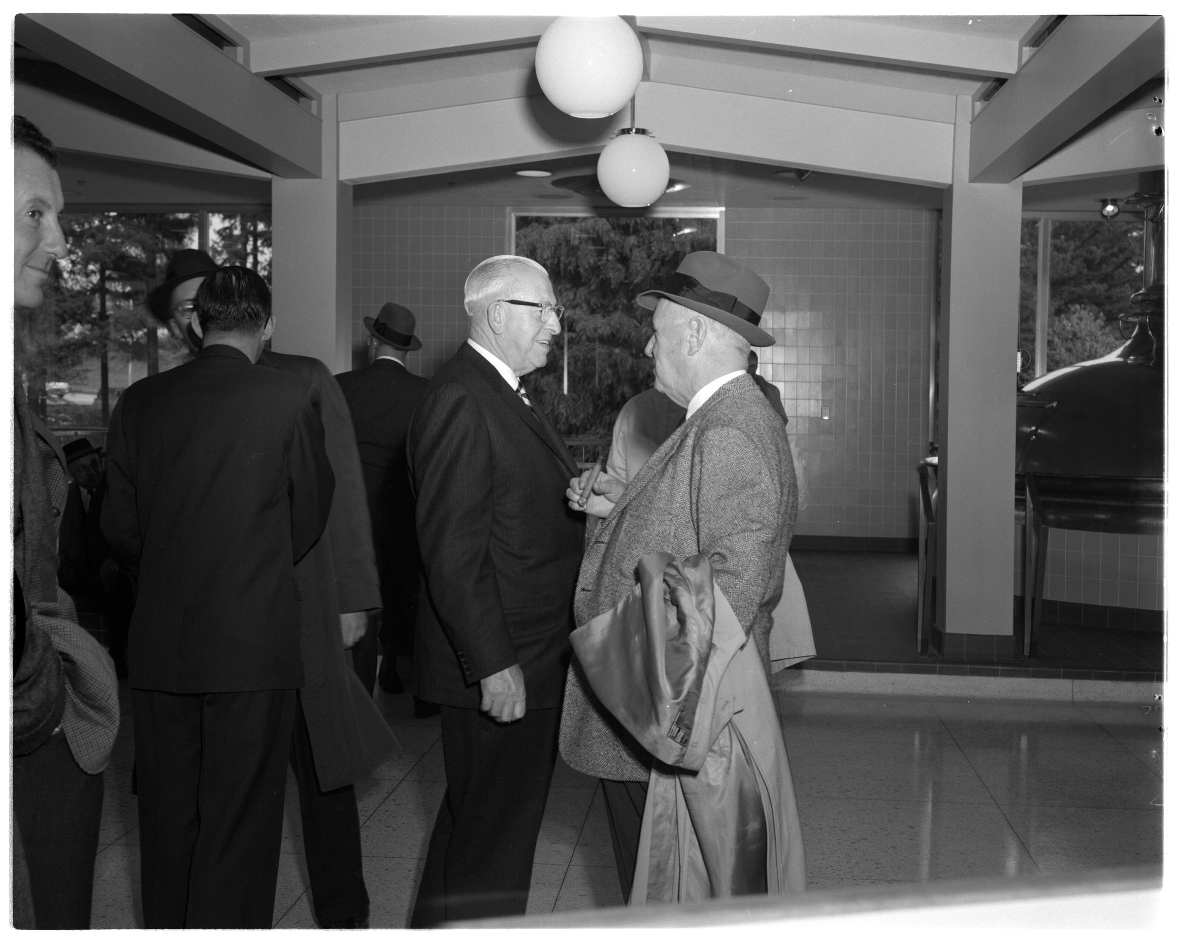 Negative, sheet film. 4 x 5 b&w. Professional associations. No. 885. United States Brewers Association visits Olympia brewery. No ID on men.