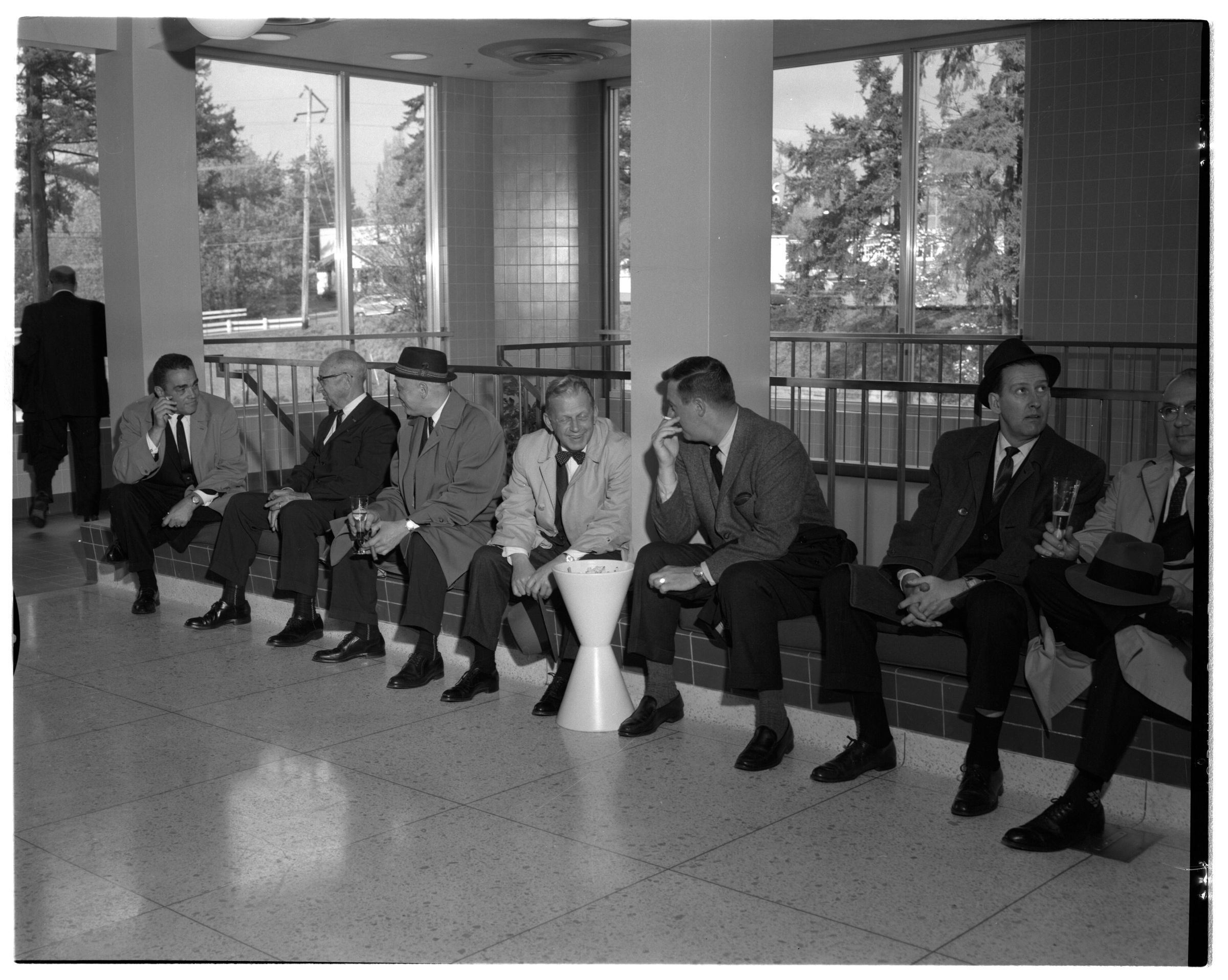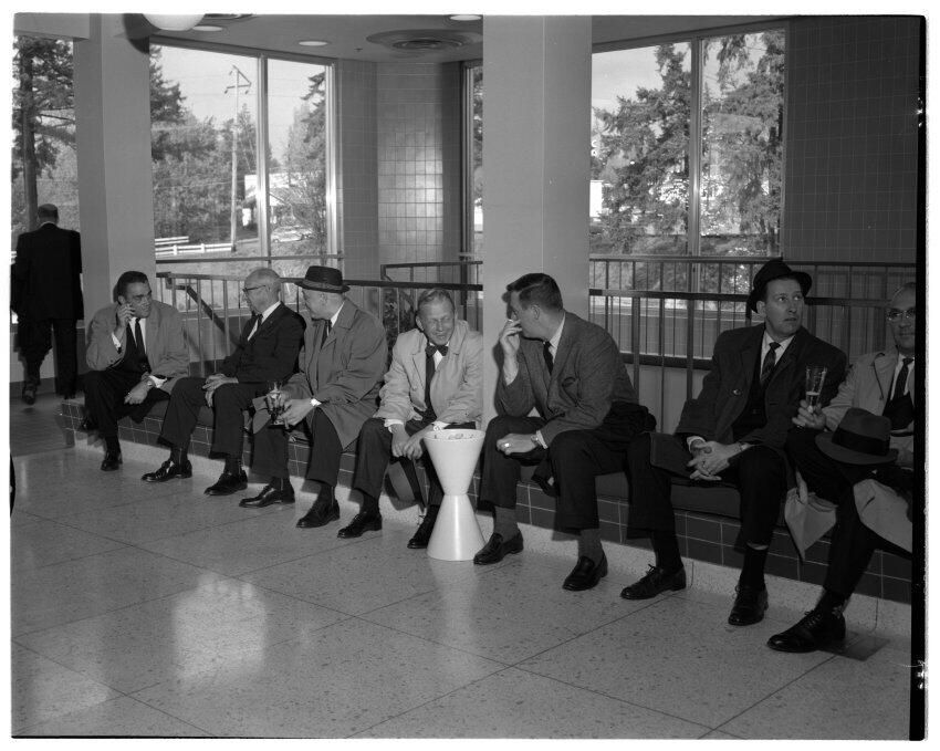 Negative, sheet film. 4 x 5 b&w. Professional associations. No. 885. United States Brewers Association visits Olympia brewery. No ID on men.