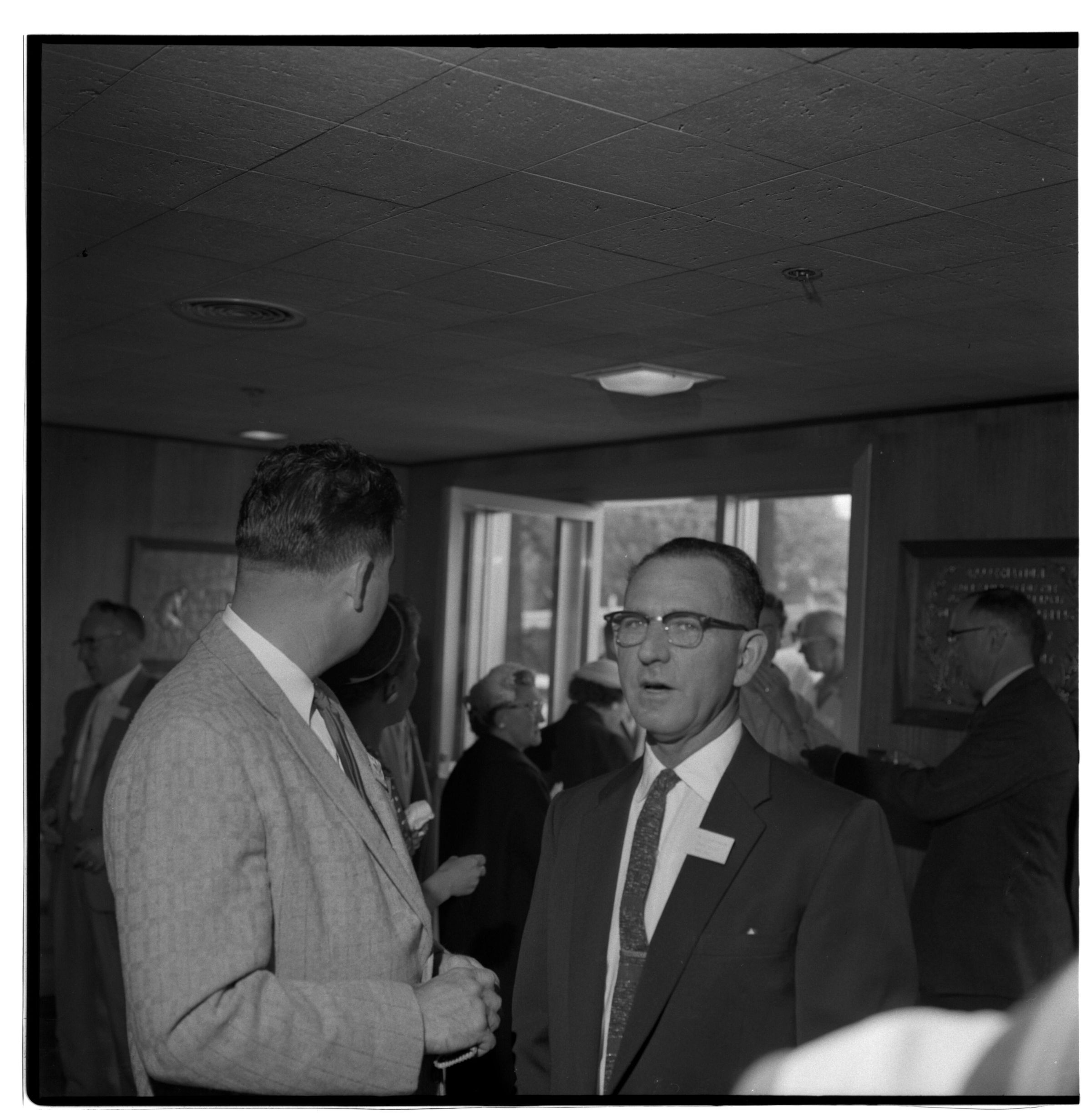 Negative, sheet film. 2 x 2 b&w. Professional associations. Unidentified men in hospitality room at Olympia brewery.