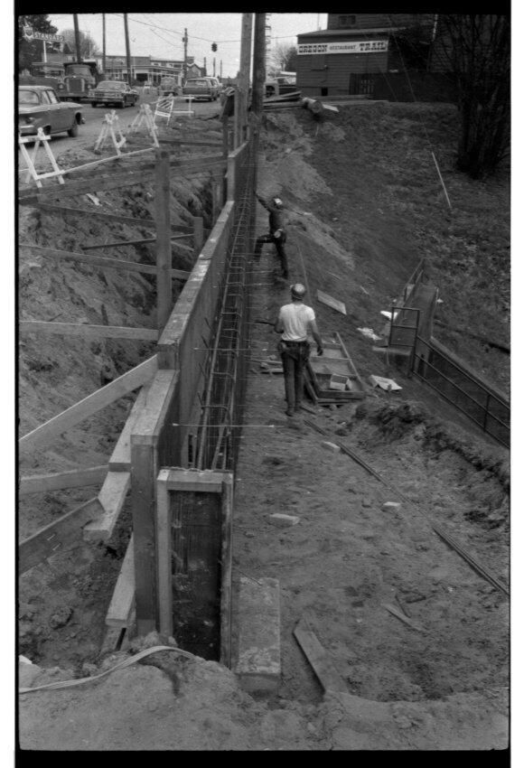 Negative, sheet film. 1.5 x 1 b&w. Railroad tunnel under Custer Way. Looking east.