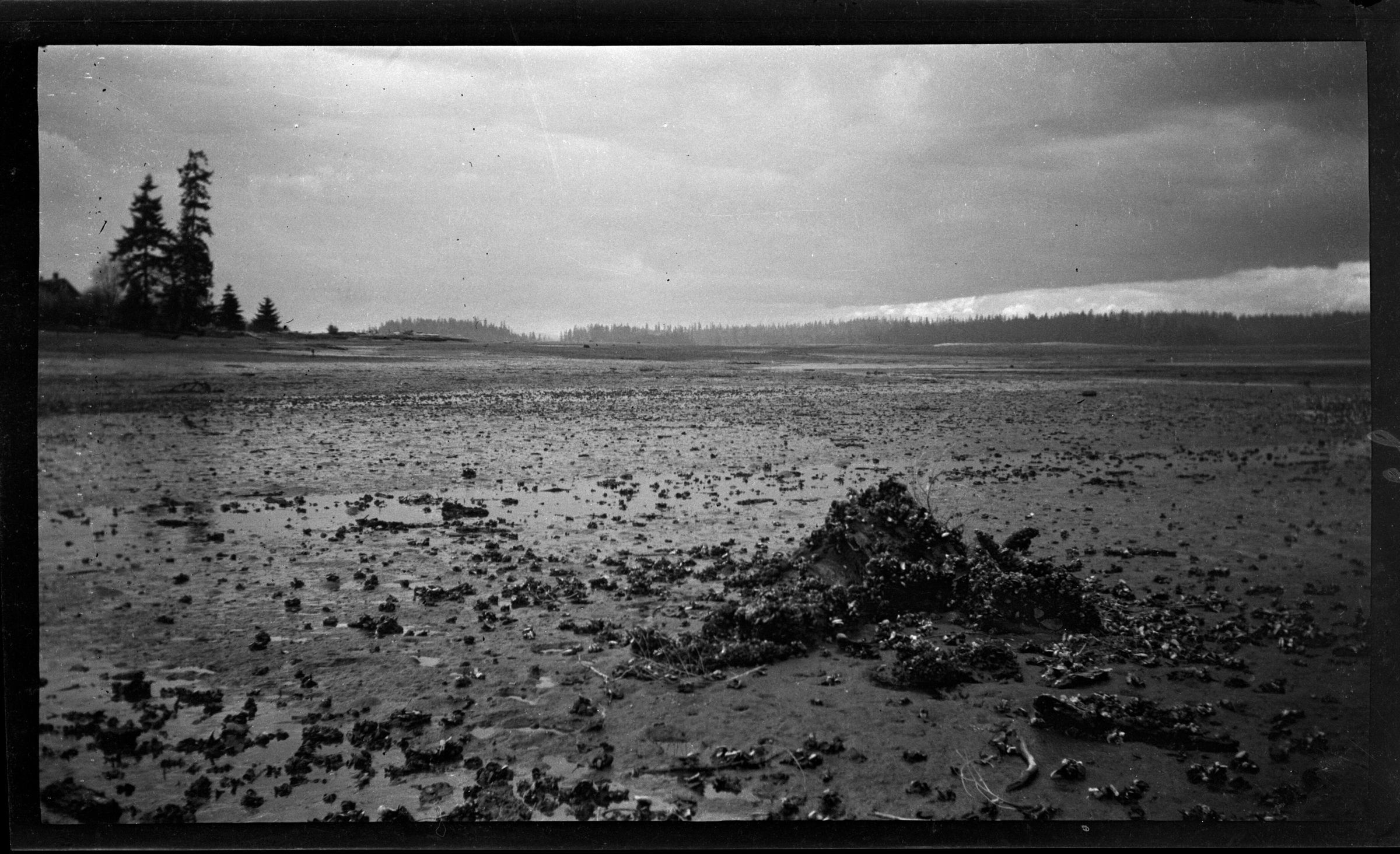 Negative, sheet film. 2.5 x 4.25 b&w. Blass Oyster Company, probably located on Totten Inlet near Kamilche, WA.