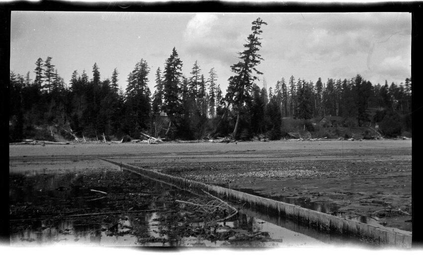 Negative, sheet film. 2.5 x 4.25 b&w. Blass Oyster Company, probably located on Totten Inlet near Kamilche, WA.