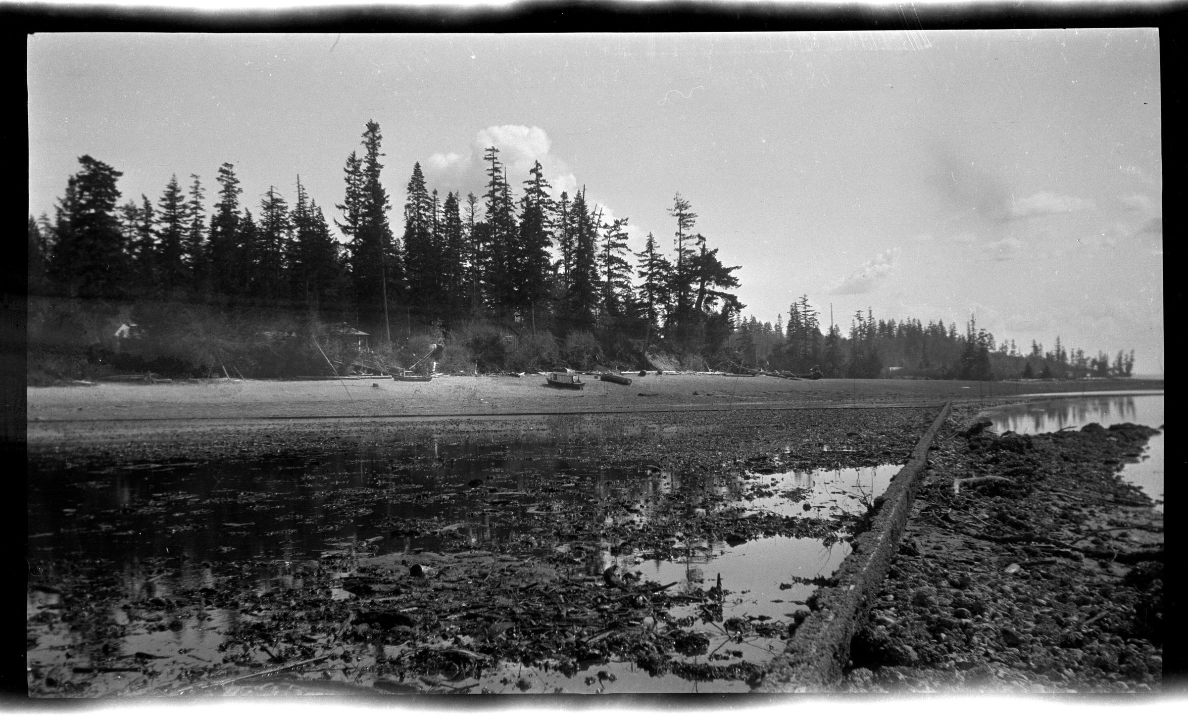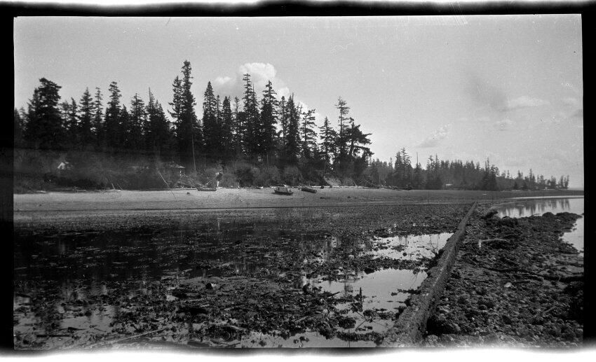 Negative, sheet film. 2.5 x 4.25 b&w. Blass Oyster Company, probably located on Totten Inlet near Kamilche, WA.