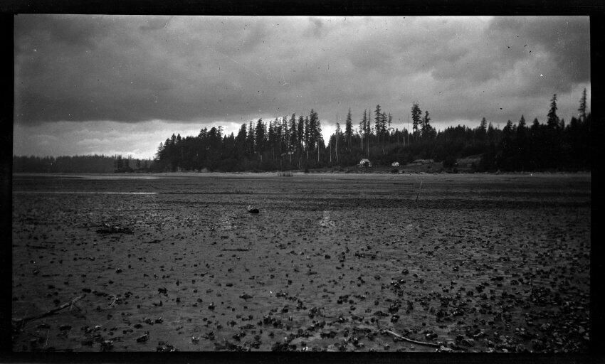 Negative, sheet film. 2.5 x 4.25 b&w. Blass Oyster Company, probably located on Totten Inlet near Kamilche, WA.