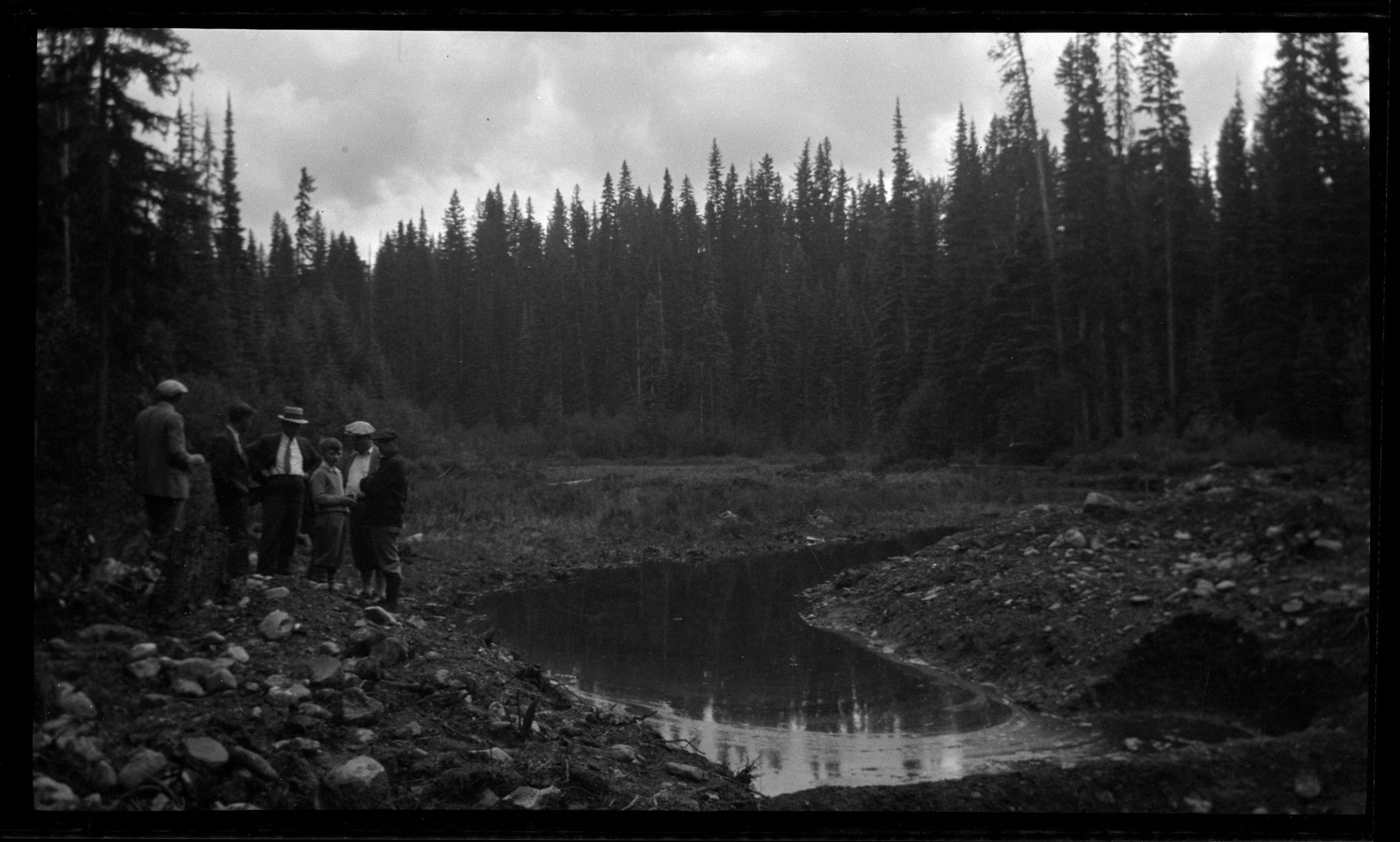Negative, sheet film. 2.75 x 4.25 b&w. Family pictures. Hydraulic mining, possibly in Alaska. No ID on men.