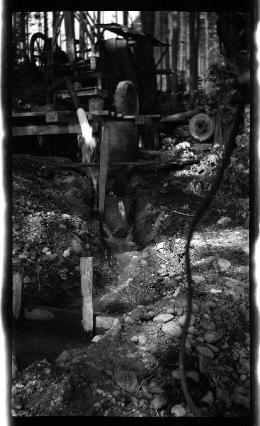 Negative, sheet film. 4.25 x 2.75 b&w. Schmidt family pictures. Hydraulic mining, possibly in Alaska.