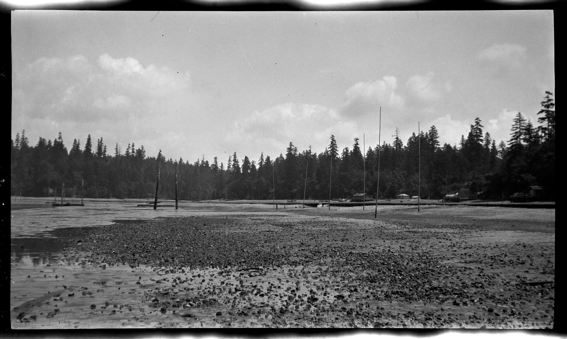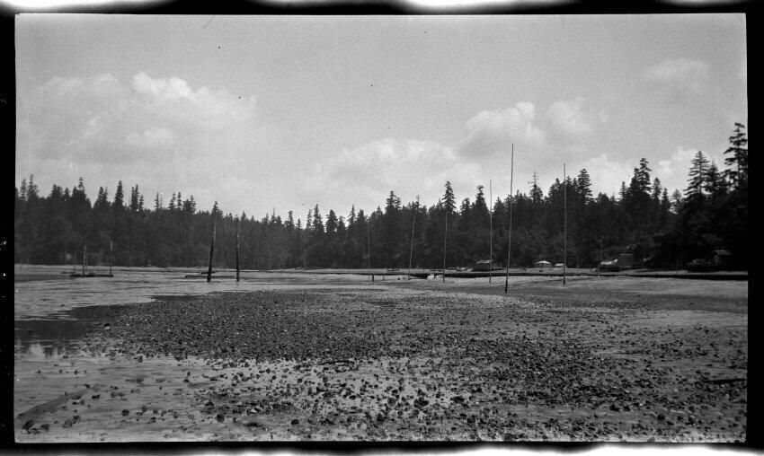 Negative, sheet film. 2.5 x 4.25 b&w. Schmidt family pictures. Oyster farm probably on southern Puget Sound.
