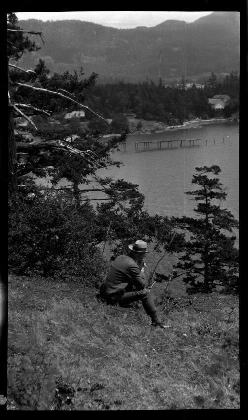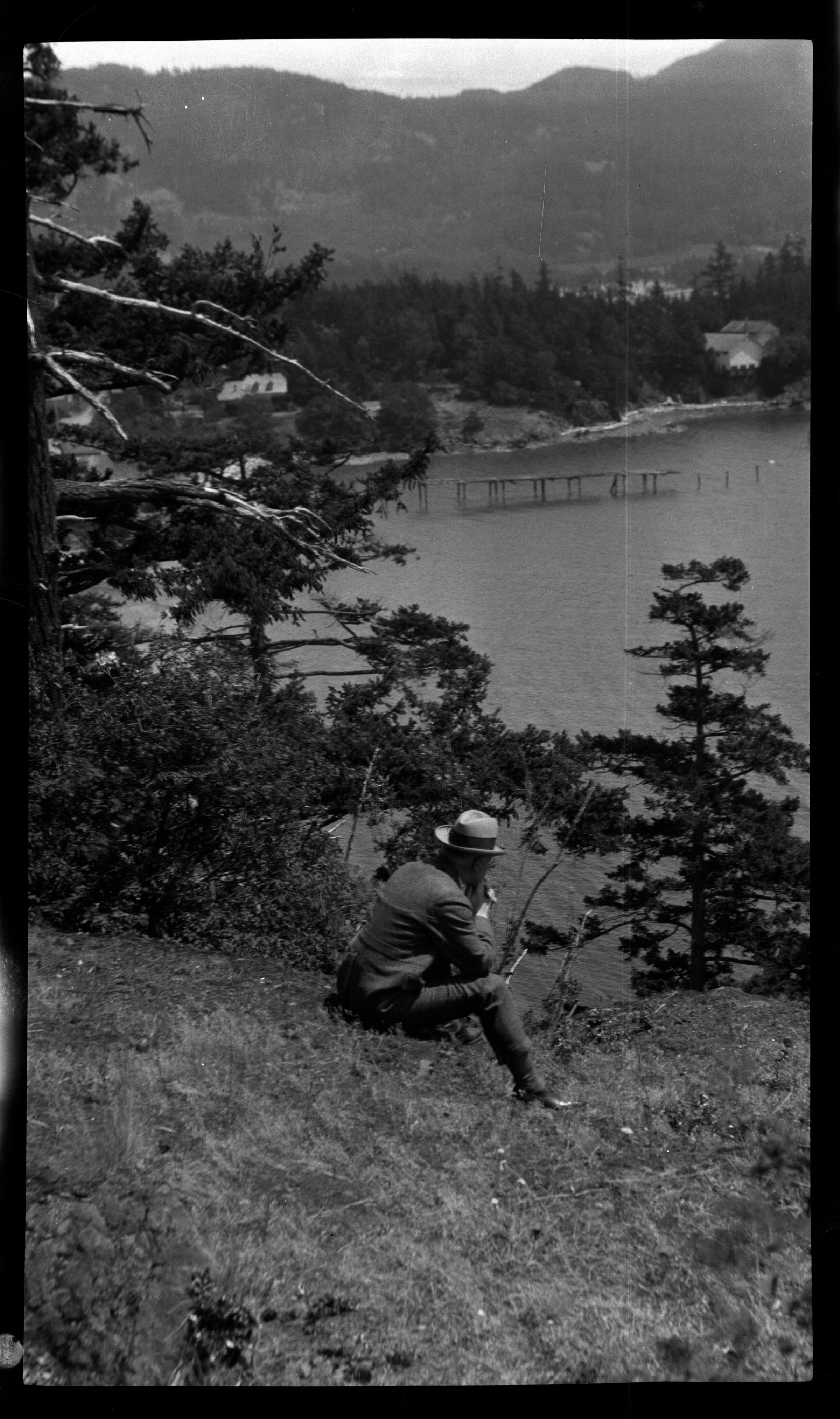 Negative, sheet film. 5.5 x 3.25 b&w. Unknown location. No ID on man.