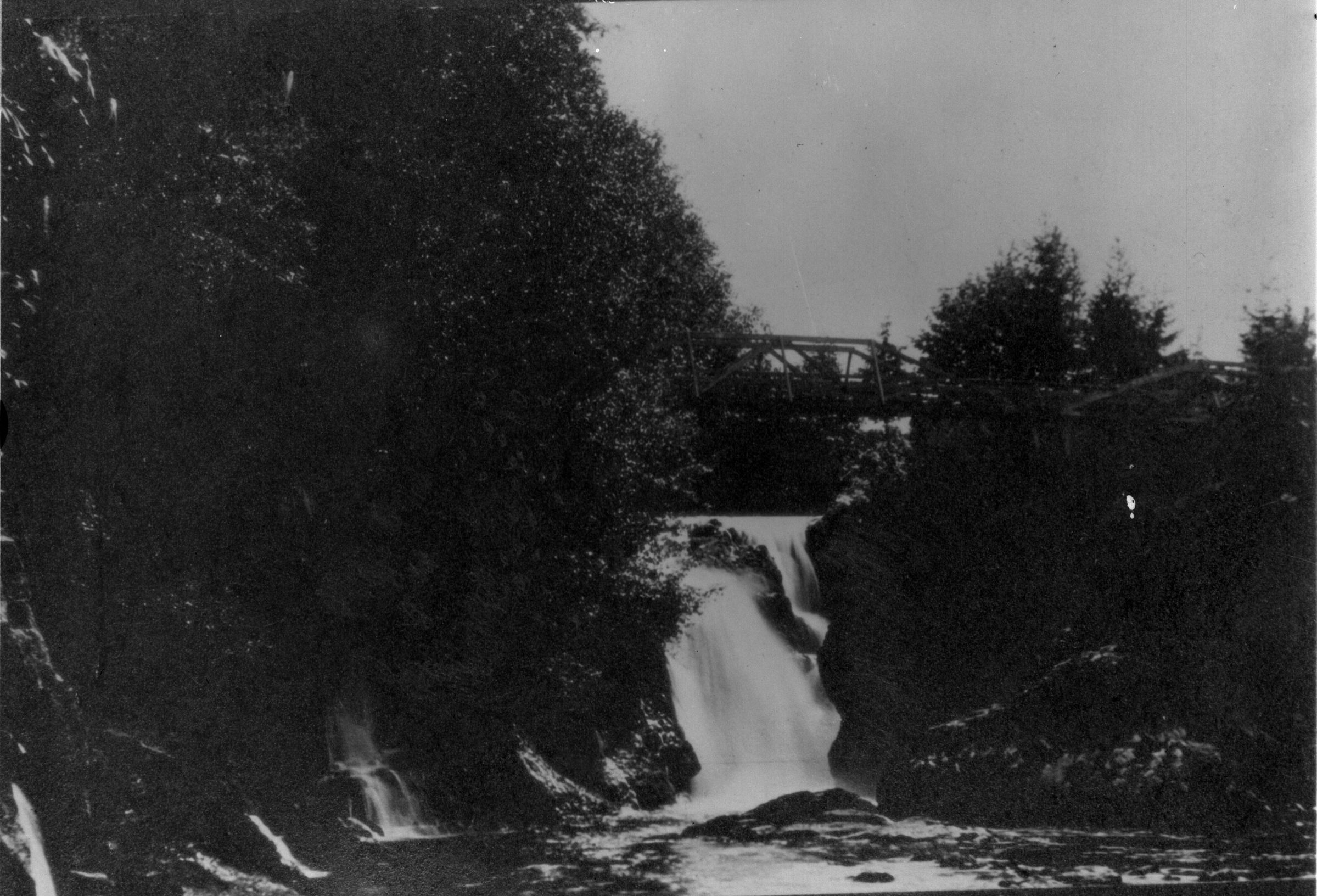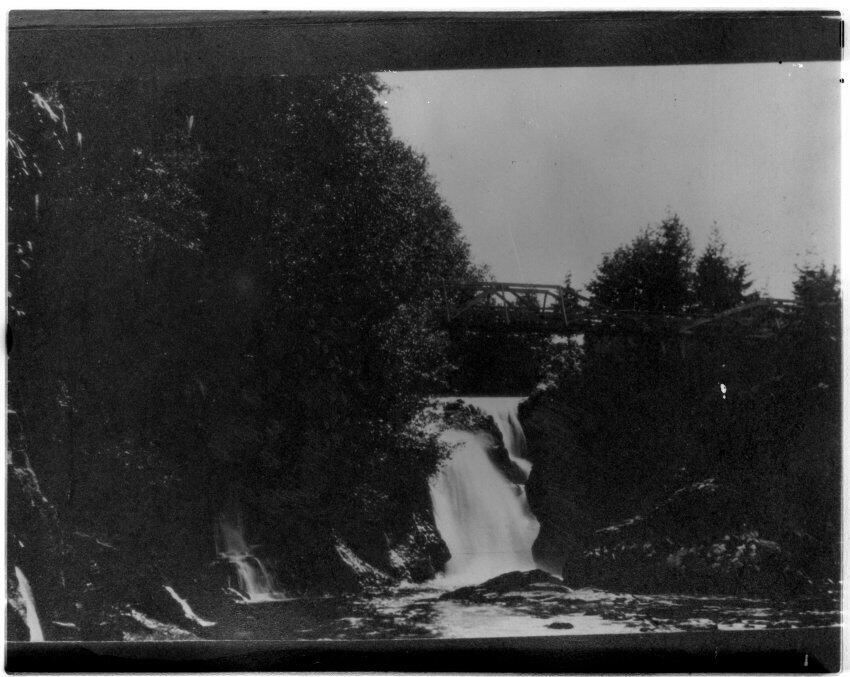 Negative, sheet film. 4 x 5 b&w. Tumwater Falls at mouth of Deschutes River.