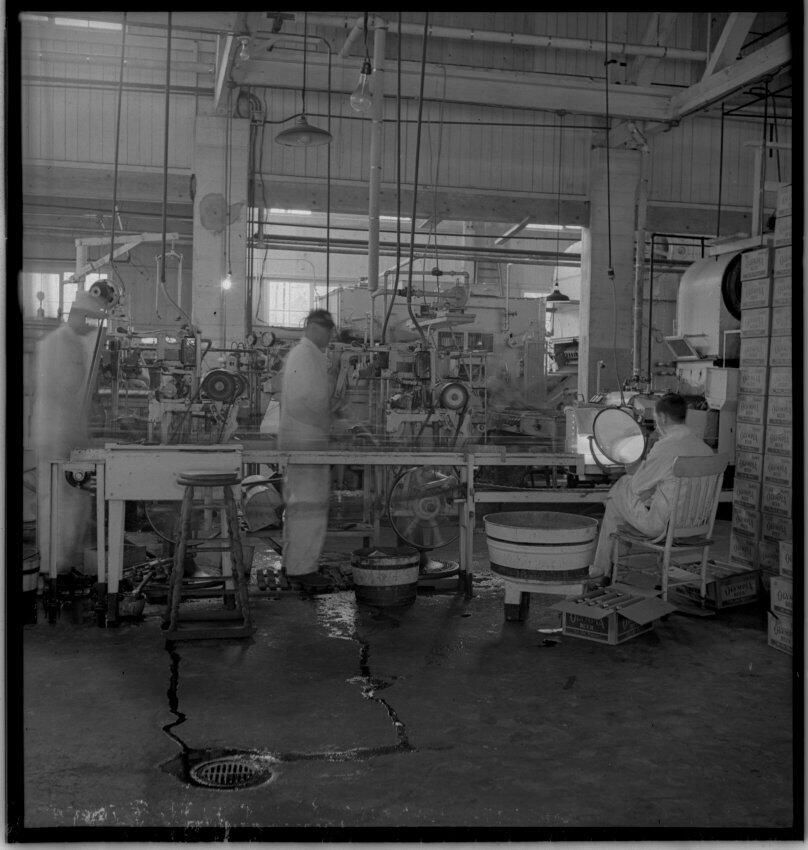 Negative, sheet film. 2.5 x 2.5 b&w. Pasteurizer.