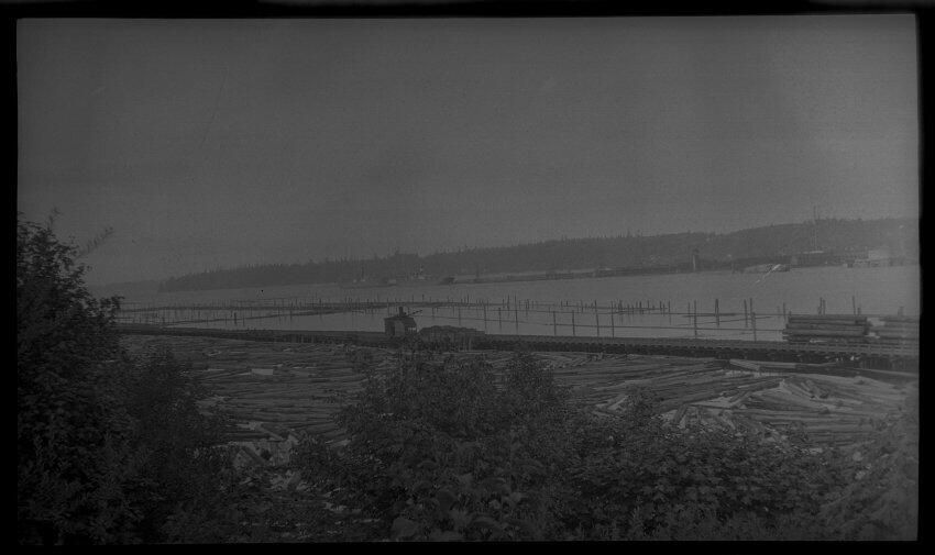 Negative, sheet film. 2.5 x 4.5 b&w. Olympia waterfront, from west side.