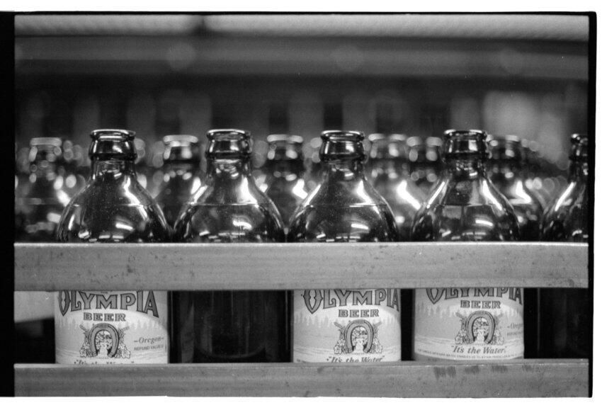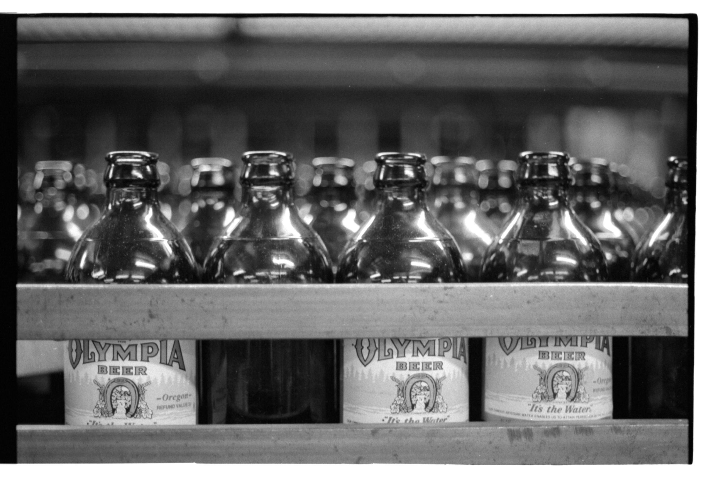 Negative, sheet film. 1 x 1.5 b&w. OBC. Bottlers going into a soaker.