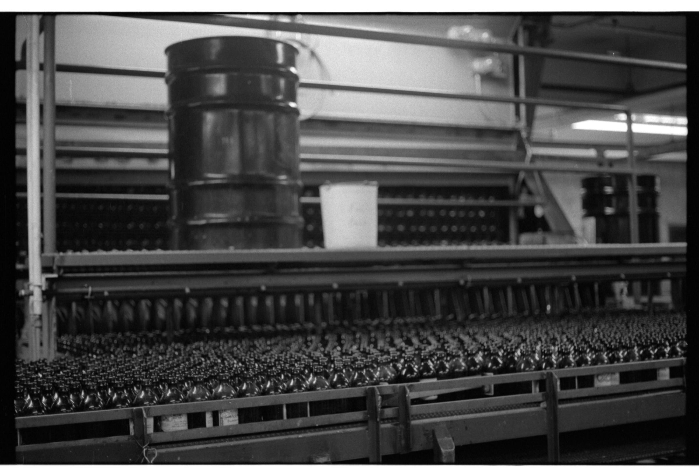 Negative, sheet film. 1 x 1.5 b&w. OBC.Bottlers going into a soaker.