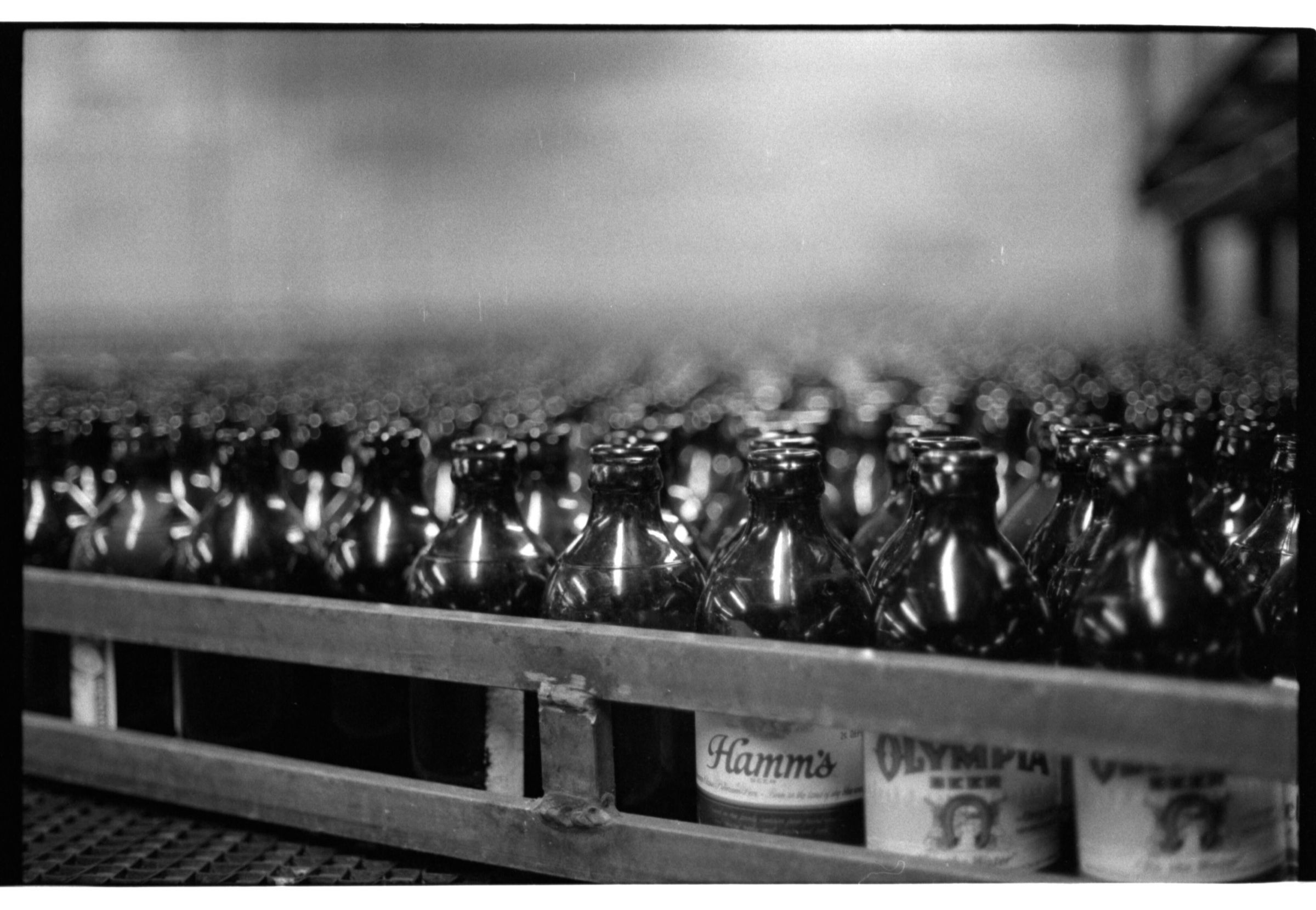 Negative, sheet film. 1 x 1.5 b&w. OBC. Bottlers going into a soaker.