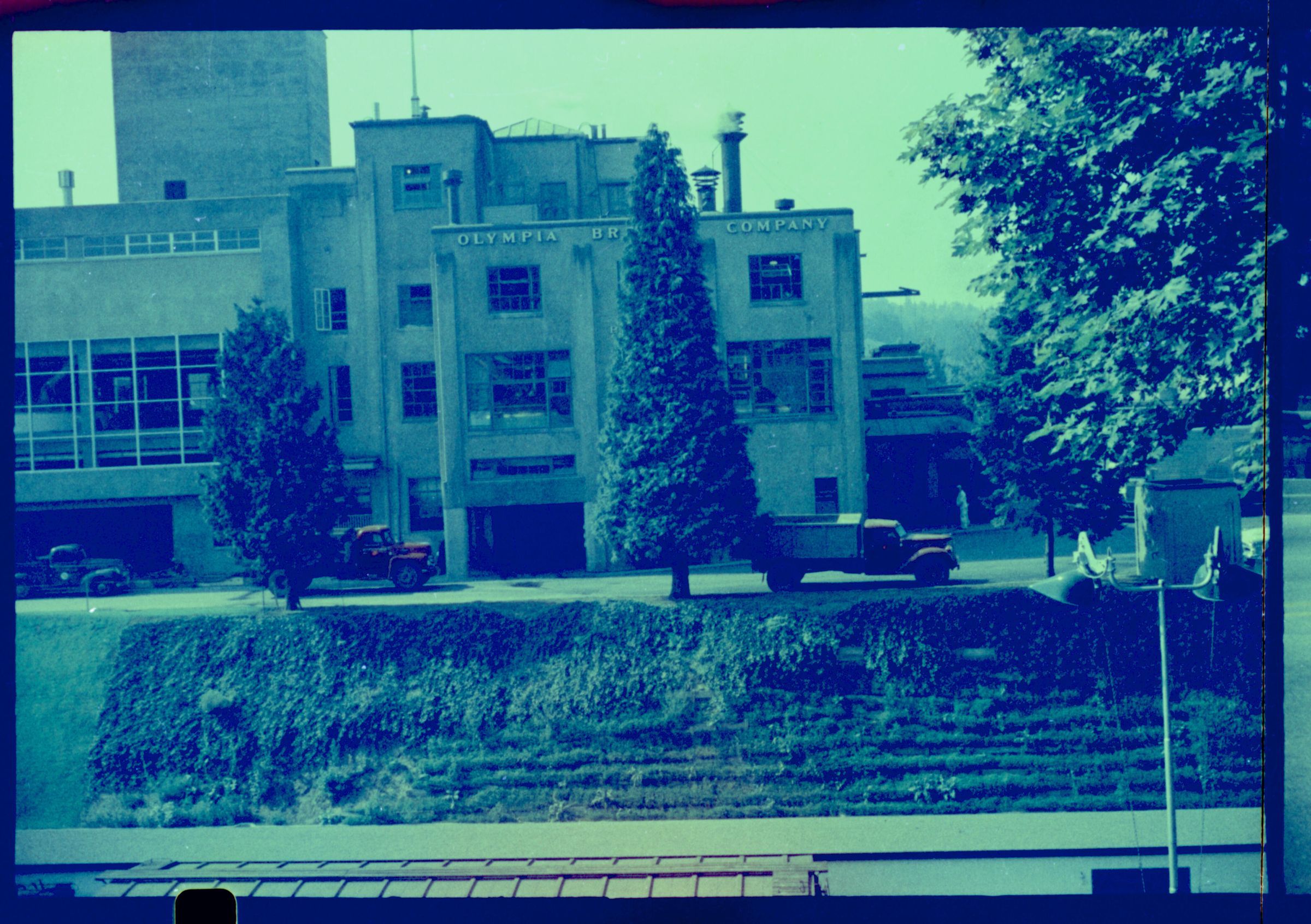 Negative, sheet film. 1.15 x 1.6 b&w. Olympia Brewing Company showing the east side of complex.