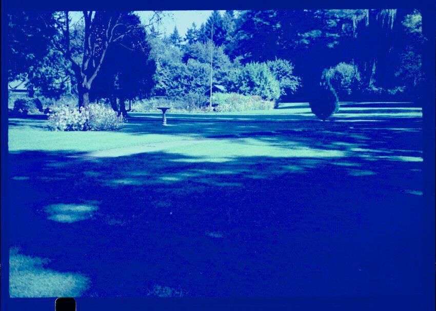 Negative, sheet film. 1.15 x 1.6 b&w. Grounds of Schmidt House.