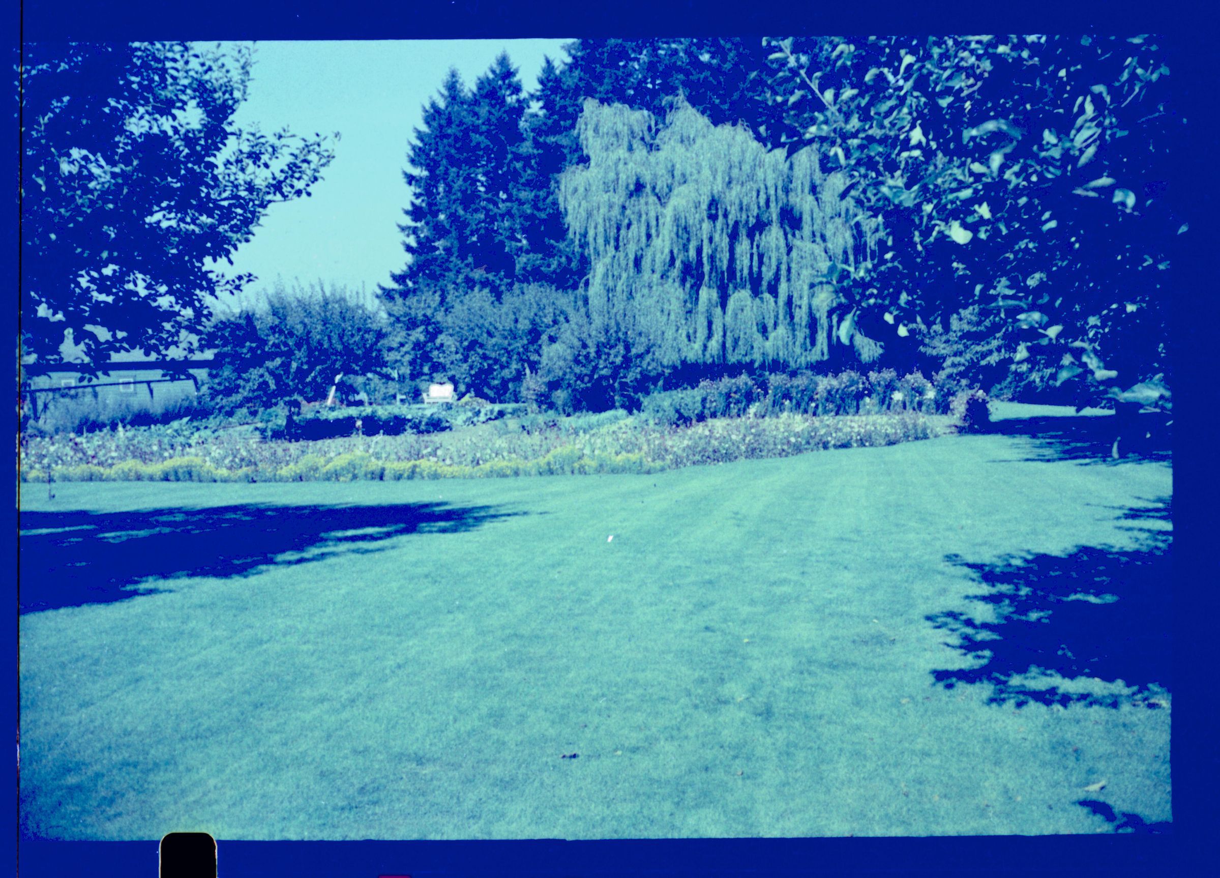 Negative, sheet film. 1.15 x 1.6 b&w. Grounds of Schmidt House.