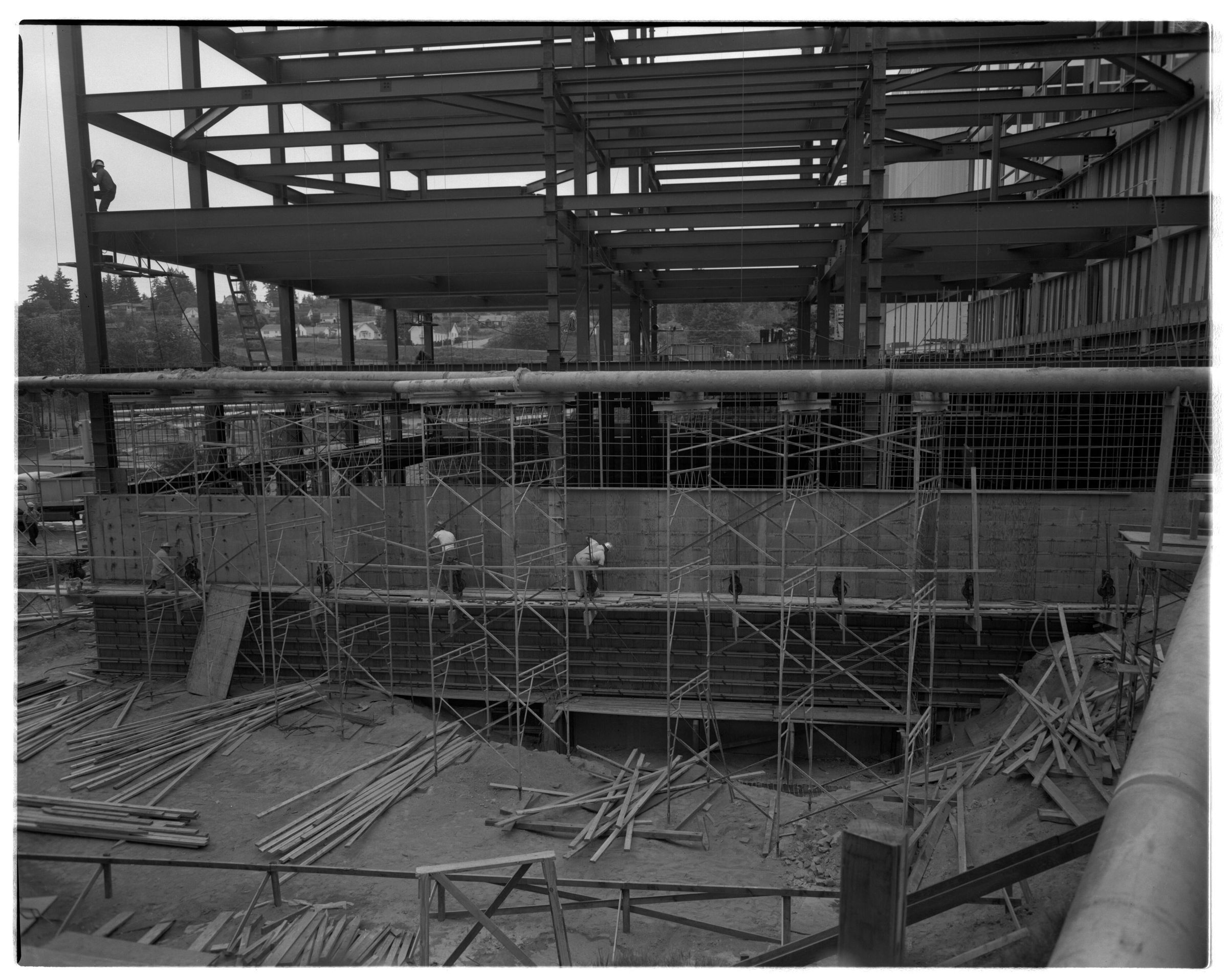 Negative, sheet film. 4 x 5 b&w. No. 6799. Williams Form Eng. (Brewery). C brewhouse under construction.