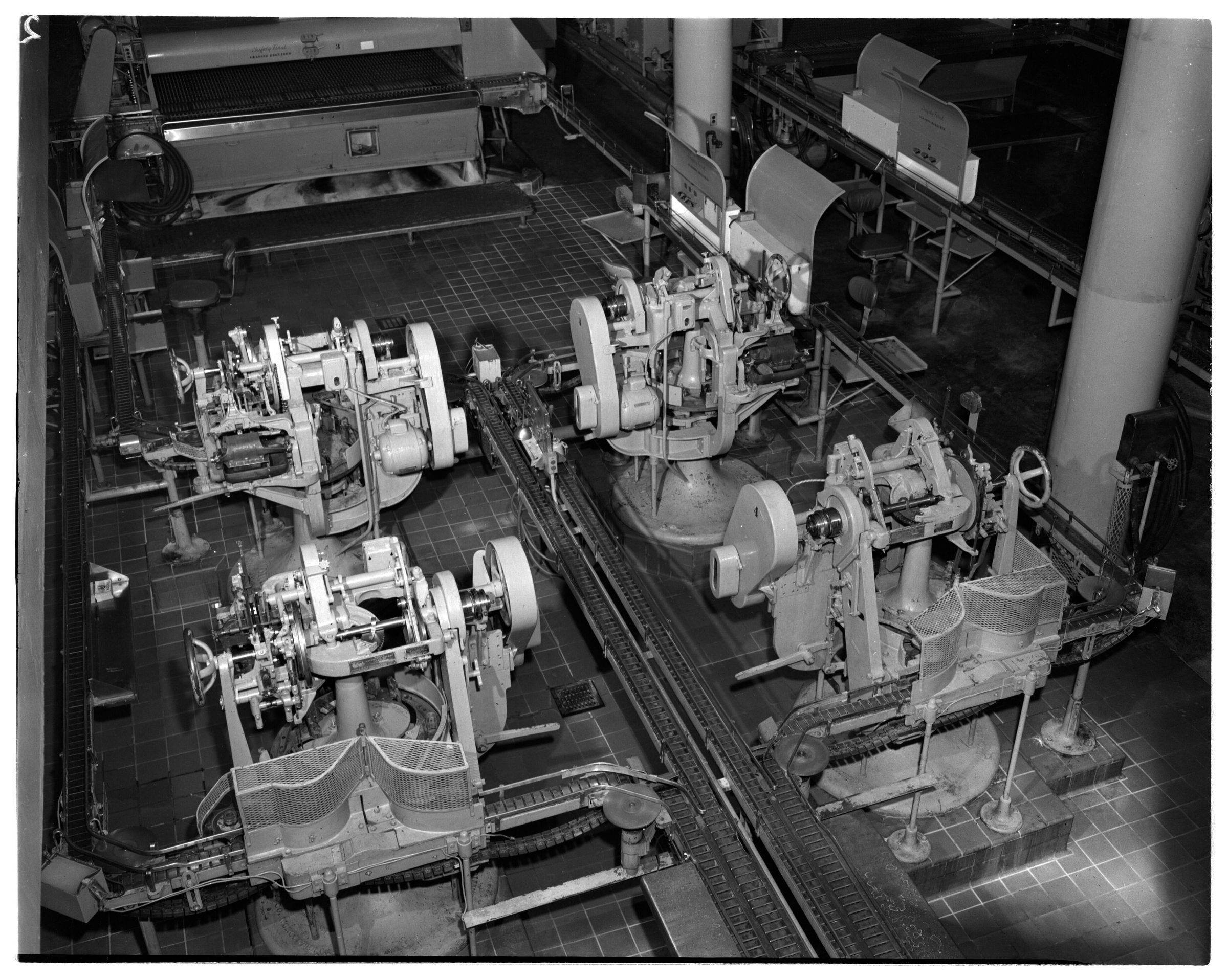 Negative, sheet film. 4 x 5 b&w. No. 2643. Olympia Brewing Co. Bottling Plt. Labeling machines.