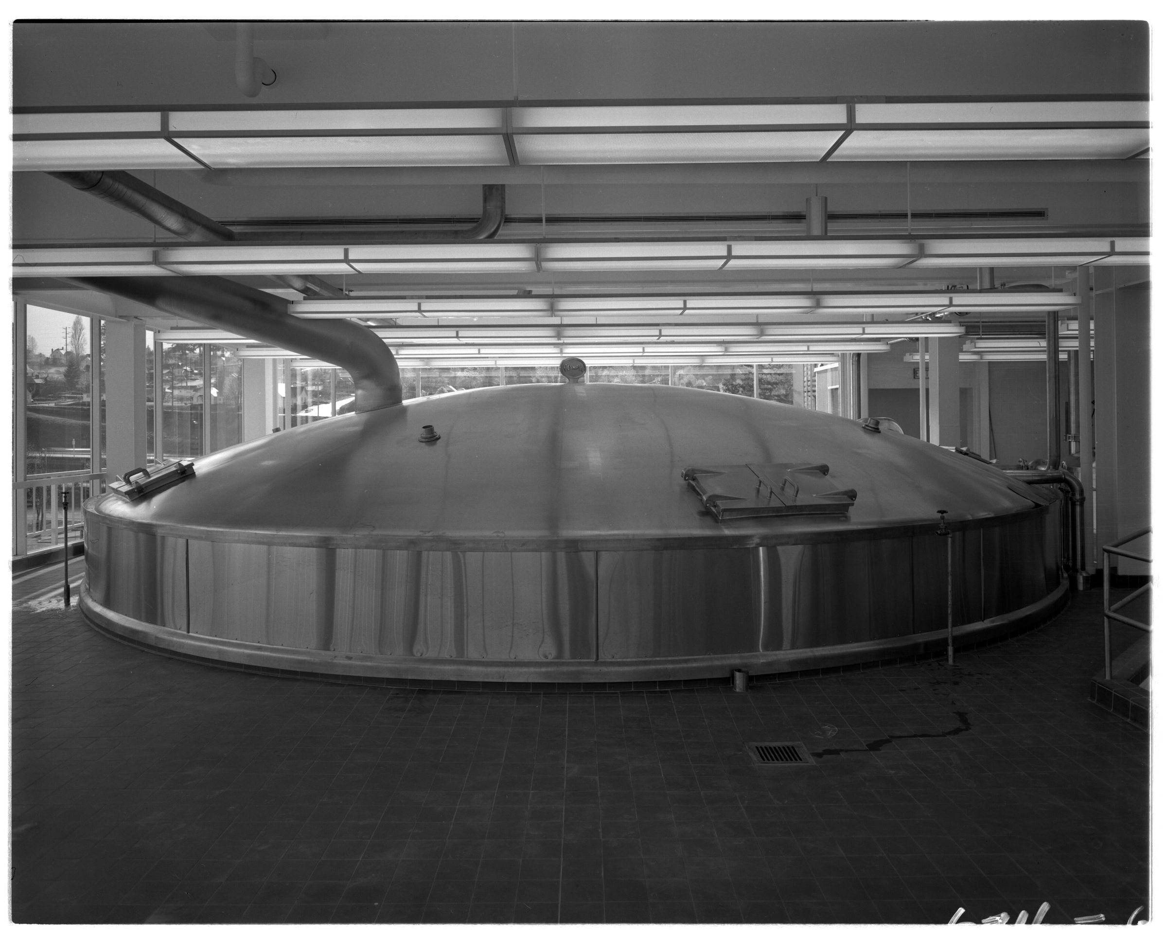 Negative, sheet film. 4 x 5 b&w. No. 6716. Olympia Brewing Co. for PSF Industries. Lauter tub (world's largest).