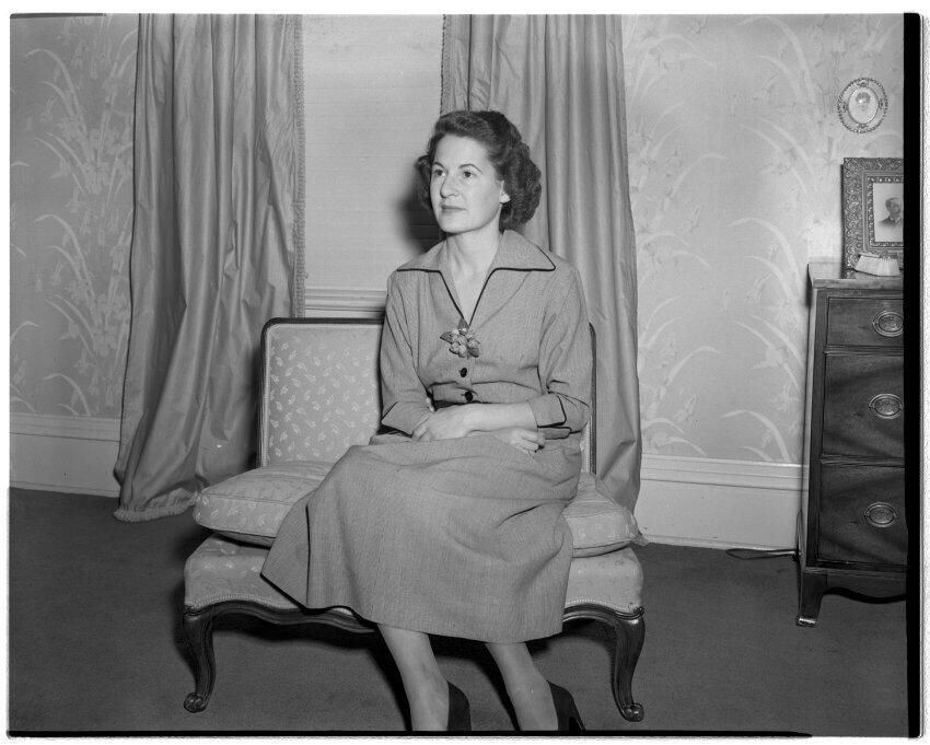 Negative, sheet film. 4 x 5 b&w. No. 2656. Margaret Gradie Schmidt Runnalls at Schmidt House.