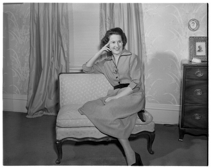 Negative, sheet film. 4 x 5 b&w. No. 2656. Margaret Gradie Schmidt Runnalls at Schmidt House.