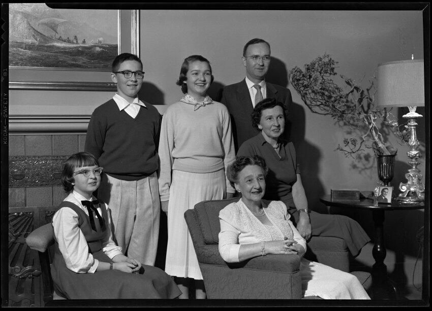 Negative, sheet film. 5 x 7 b&w. No. K 59. Mrs. Adolph Schmidt. Christmas group. Order finished Sat Feb 2. Caroline and Matt Maury family, Christmas photo, taken at Winifred Schmidt's house.