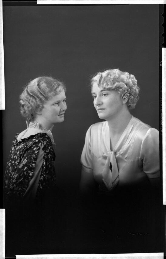 Negative, sheet film. 6.25 x 4 b&w. Mrs. Phillip Schmidt. No ID on women.