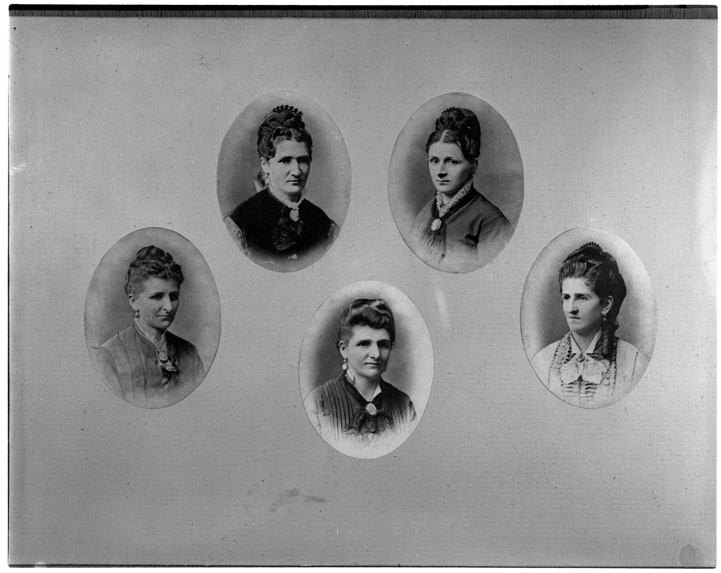 Negative, sheet film. 4 x 5 b&w. No. 2656. Steiner family. Johanna Steiner Schmidt at upper right, with sisters.