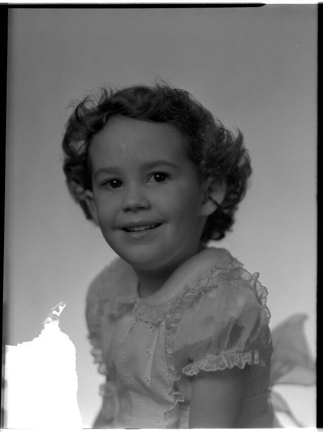 Negative, sheet film. 3.5 x 5 b&w. No. D873. Mrs. Adolph Schmidt. Little girl.