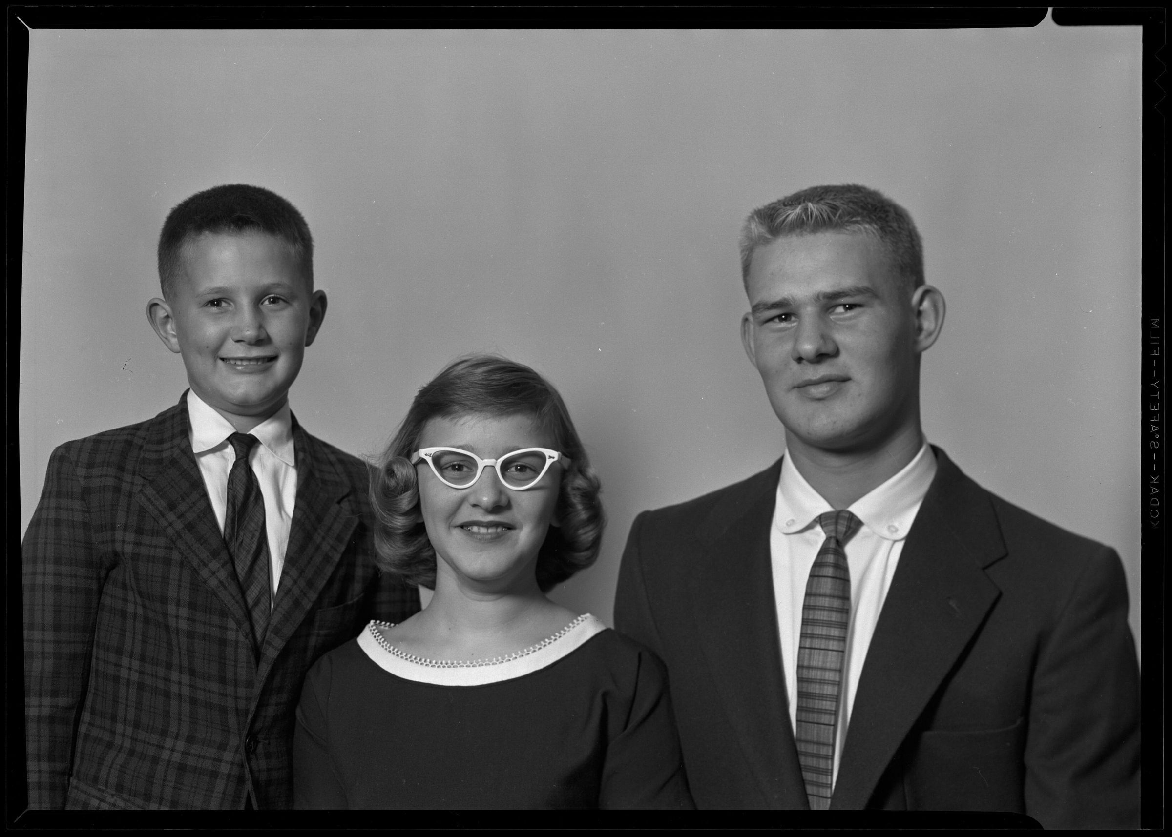 Negative, sheet film. 7 x 5 b&w. No. K585. Children of Bobby Schmidt: Frank, Jennifer, Robbie.