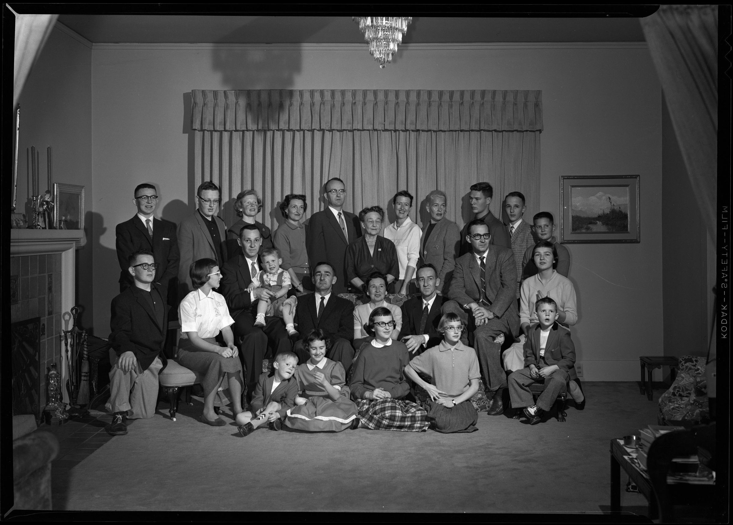Negative, sheet film. 7 x 5 b&w. No. L772. Christmas photo at Winifred Schmidt's house.