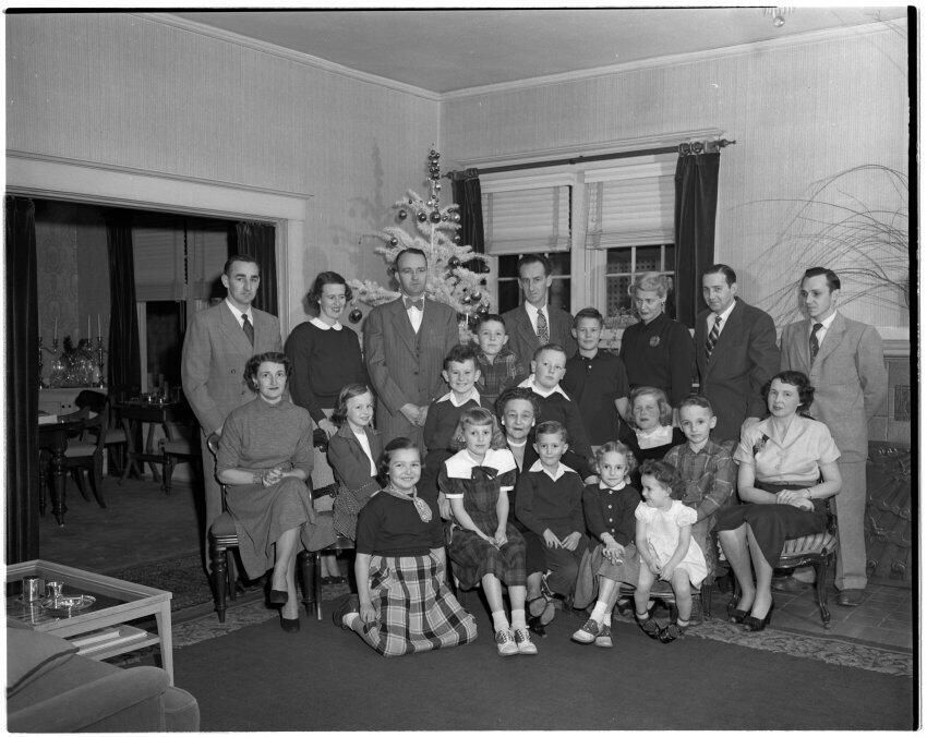 Negative, sheet film. 4 x 5 b&w. No. 2654. Family group at home of Winifred Schmidt.