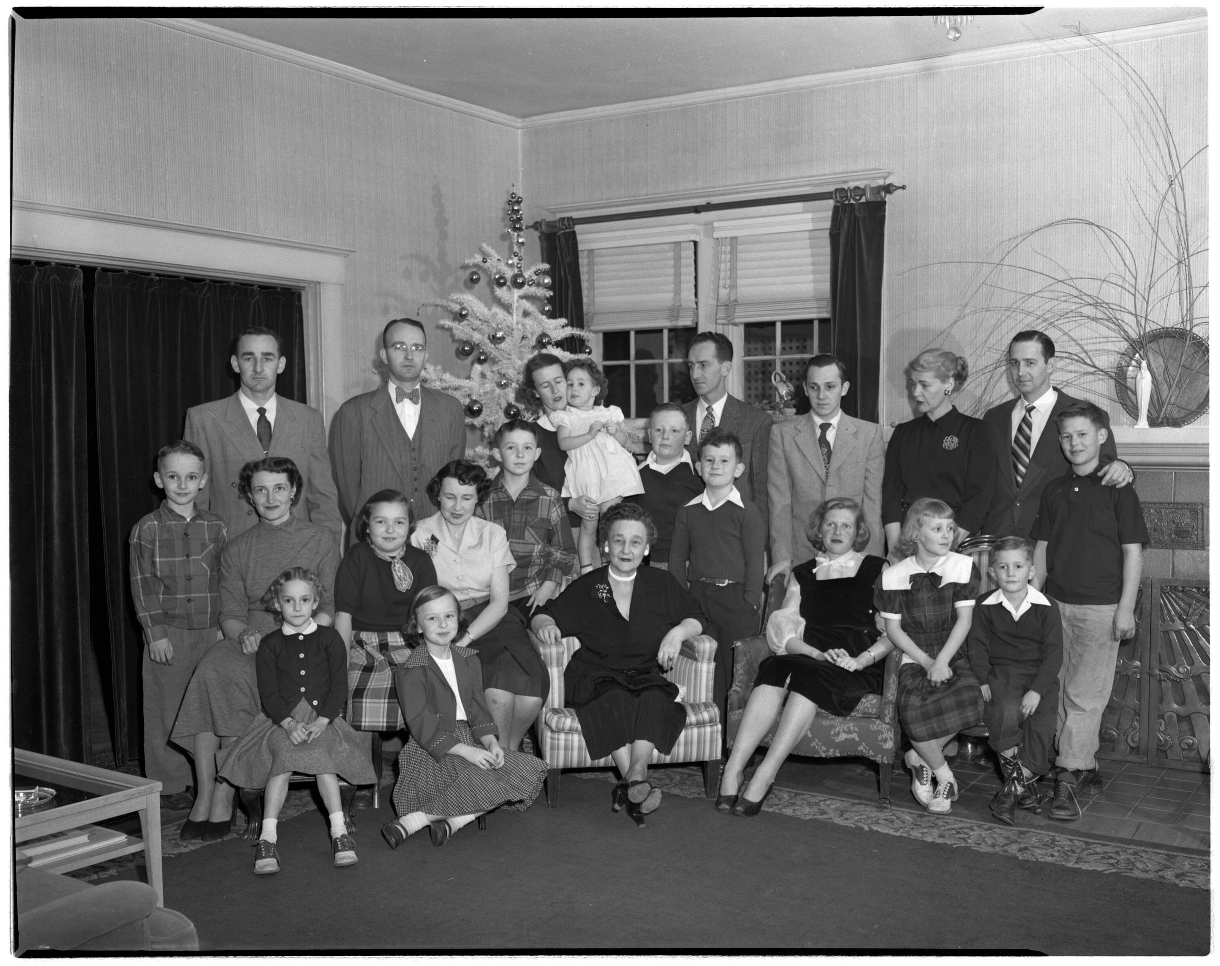 Negative, sheet film. 4 x 5 b&w. No. 2654. Family group at home of Winifred Schmidt.