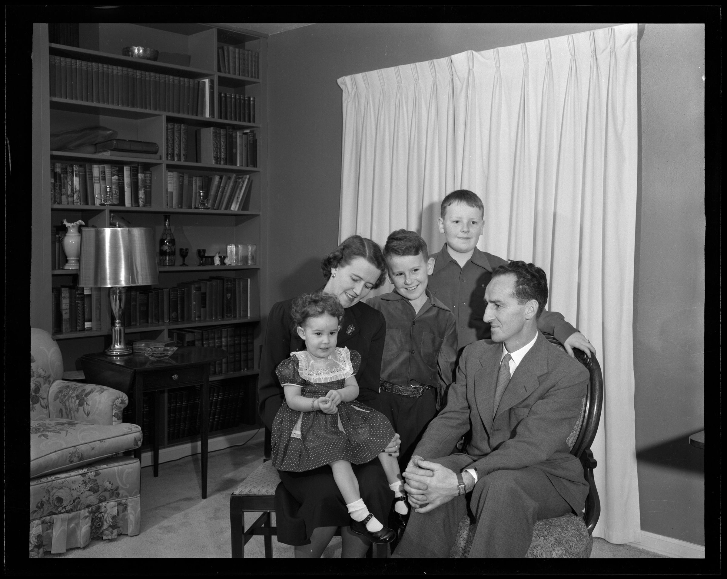 Negative, sheet film. 4 x 5 b&w. No. 2654. Susan, Waynette, Michael, Rick, and Bump Schmidt.