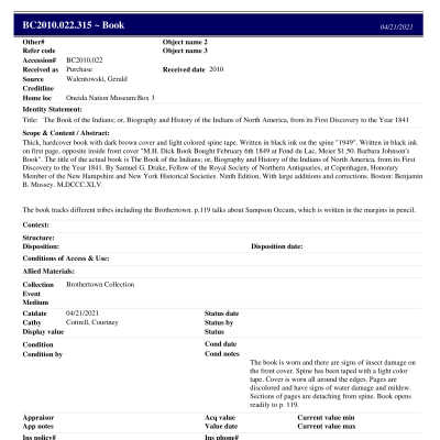 Brothertown Indian Nation holds physical copies and copyright; contact Brothertown for reproductions and publishingCreated By