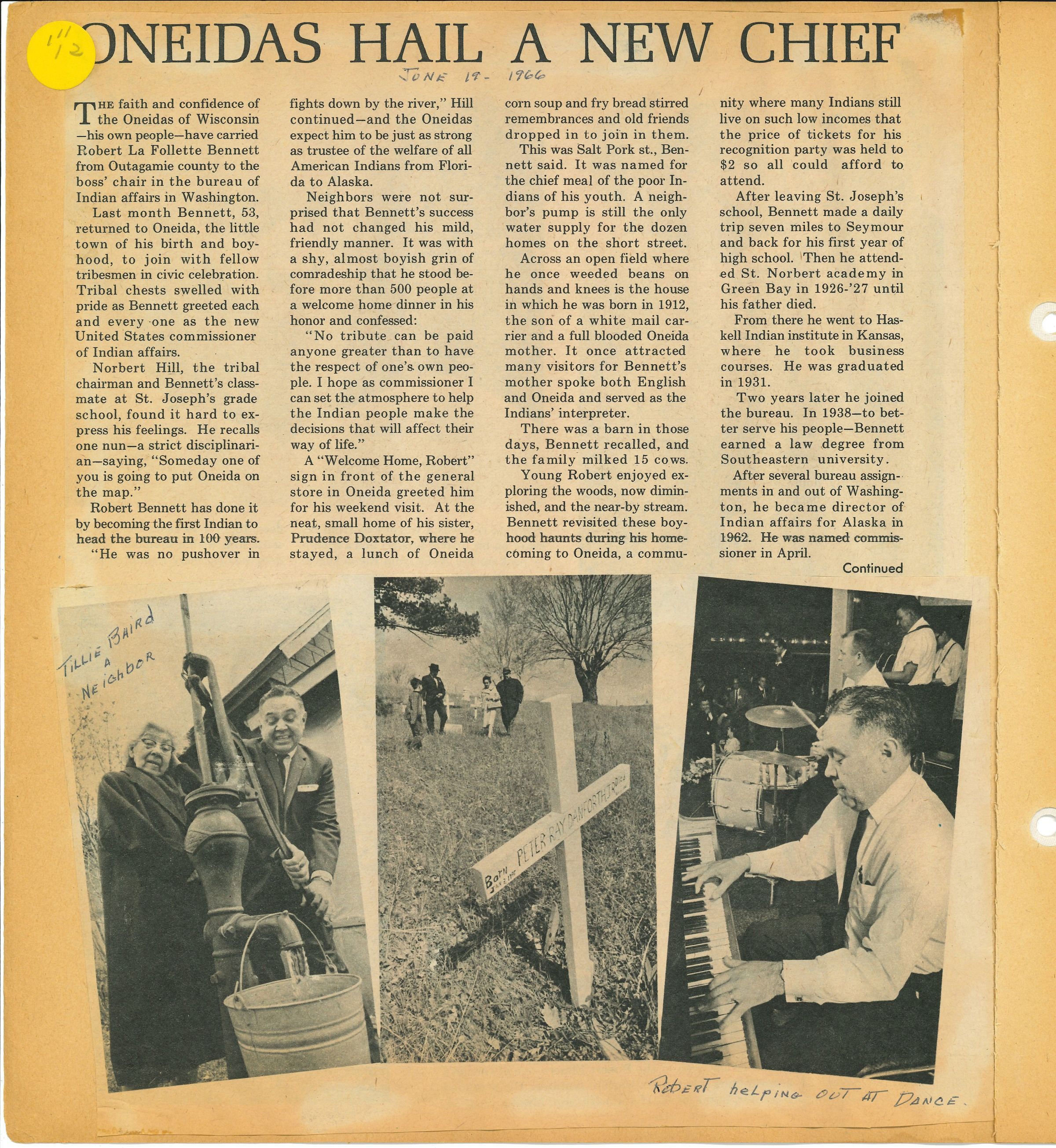 Placed with the Bennett Collection and the box was labeled as Bennett Collection, but unsure if was part of original collection. Only one article mentions Bennett, the rest are misc. Keeping with the entire collection and giving it the accession number A.2001.005.017 as the original was of news clippings and letters, but the years don’t match with any of the original binders in the inventory. May need to change this in the future.Created By