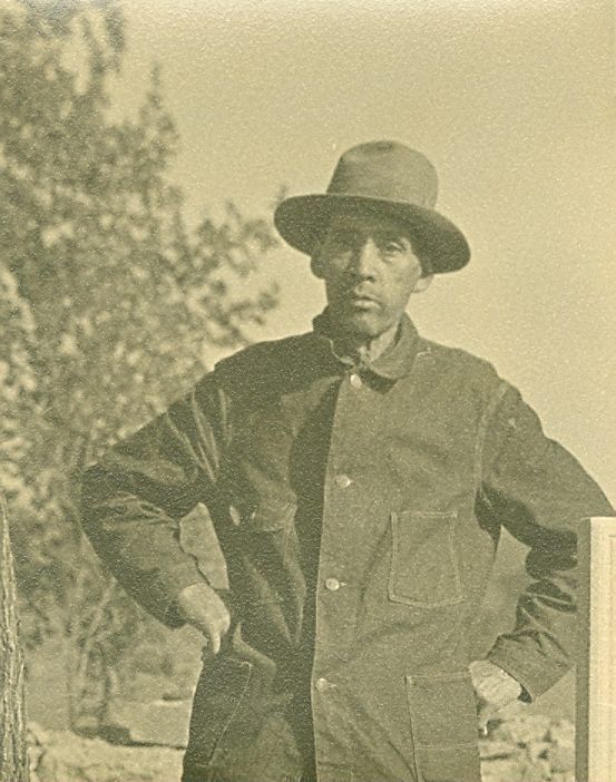 Black and white photograph of Arthur Potter from the waist up. His hands are on his hips. He is wearing a dark button up