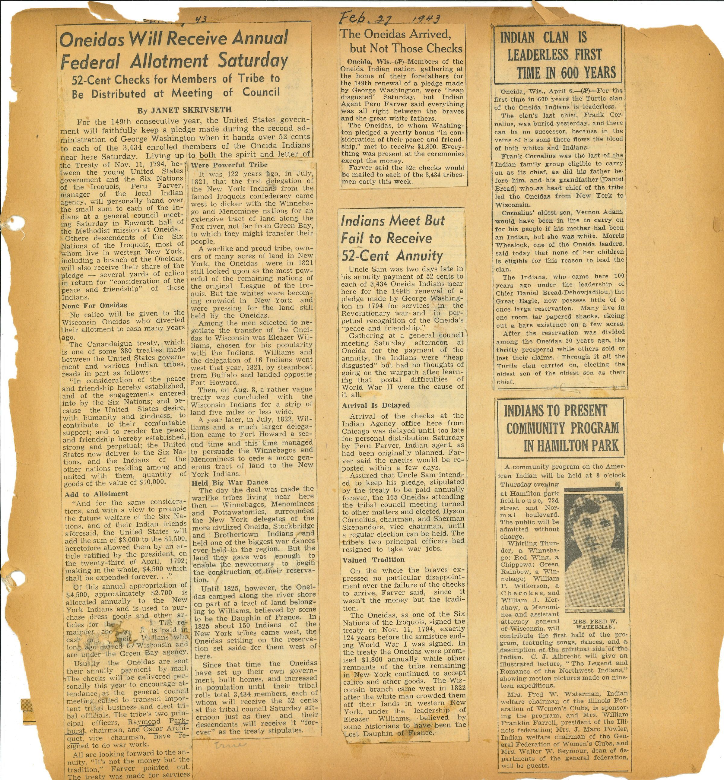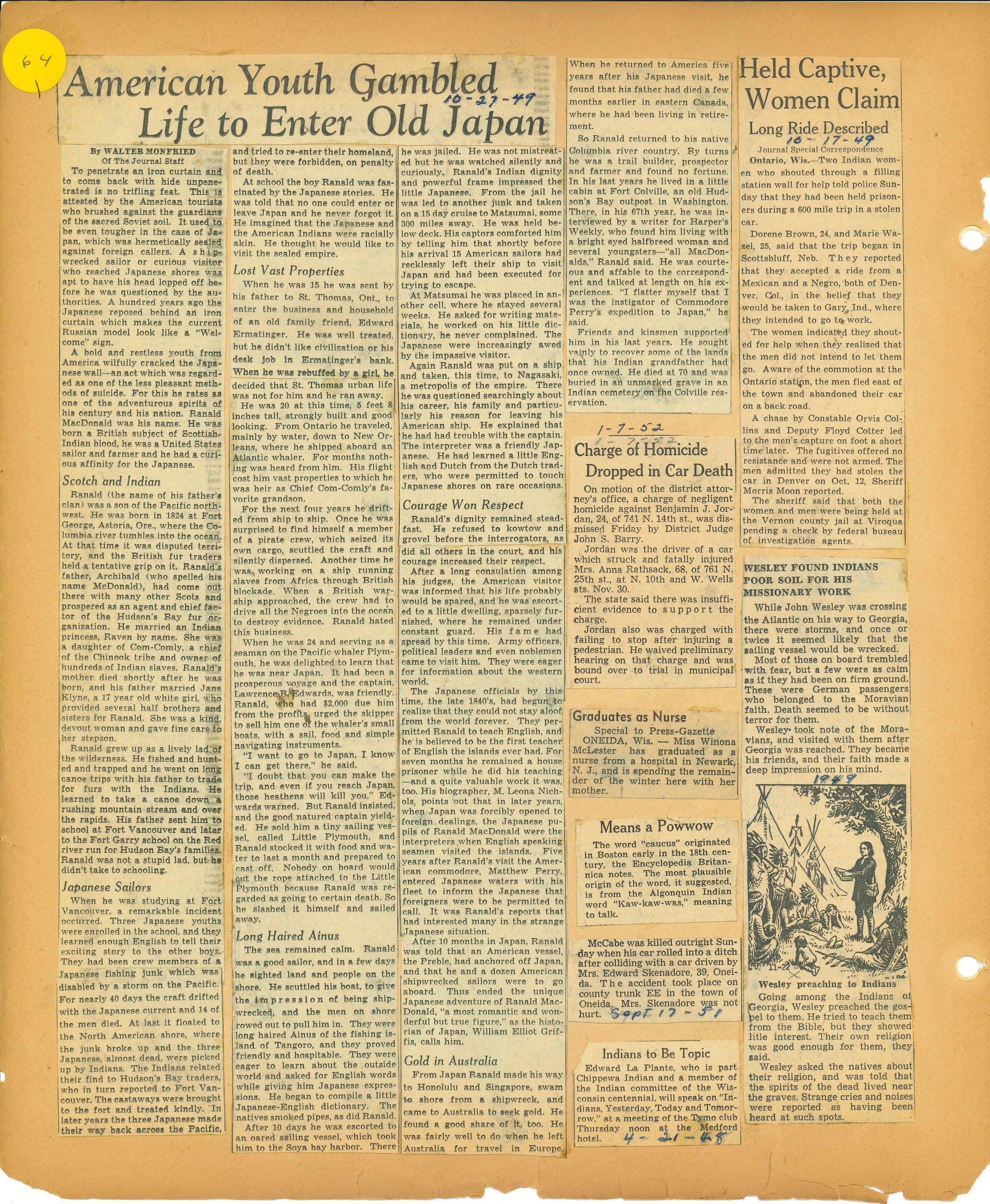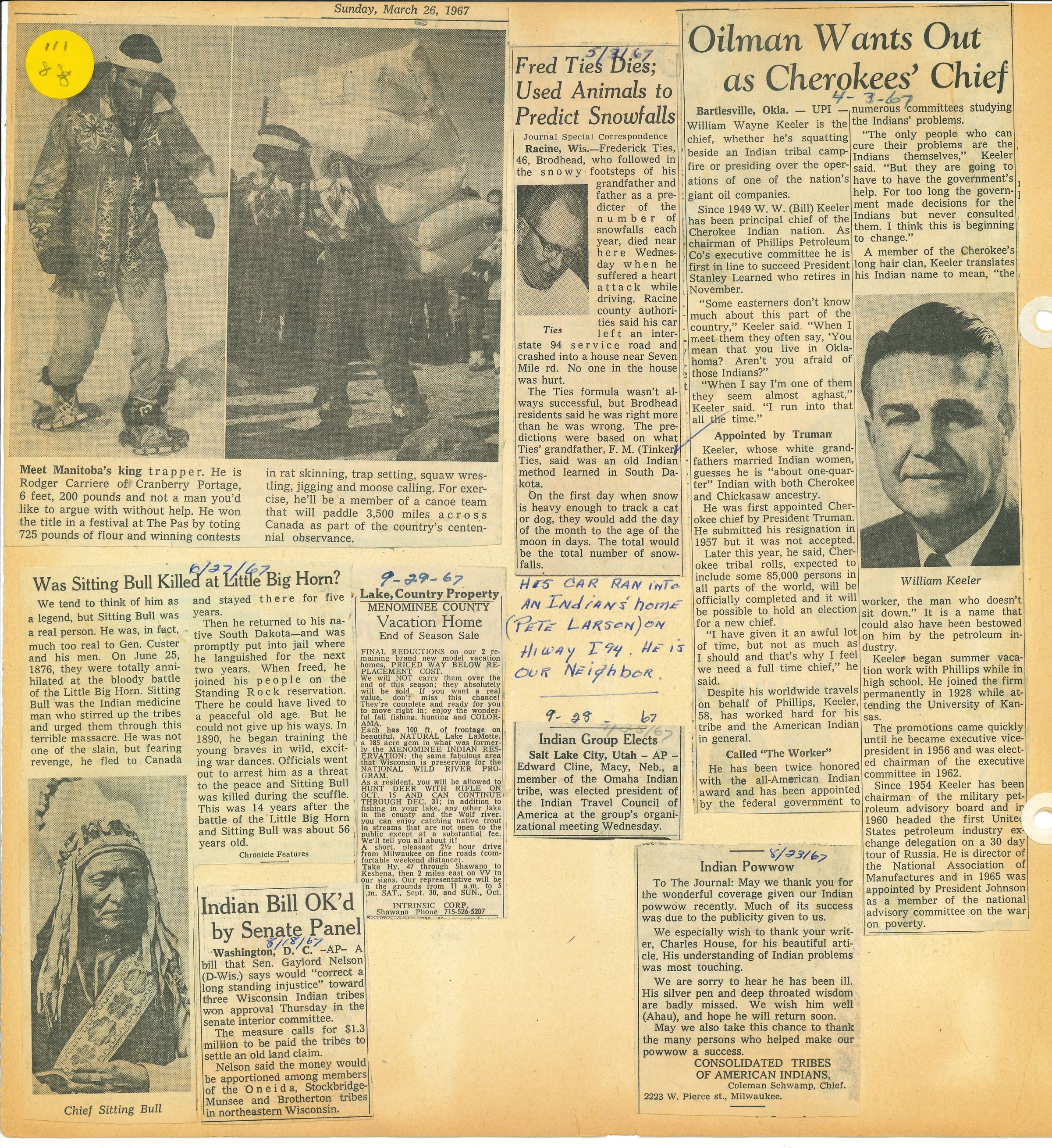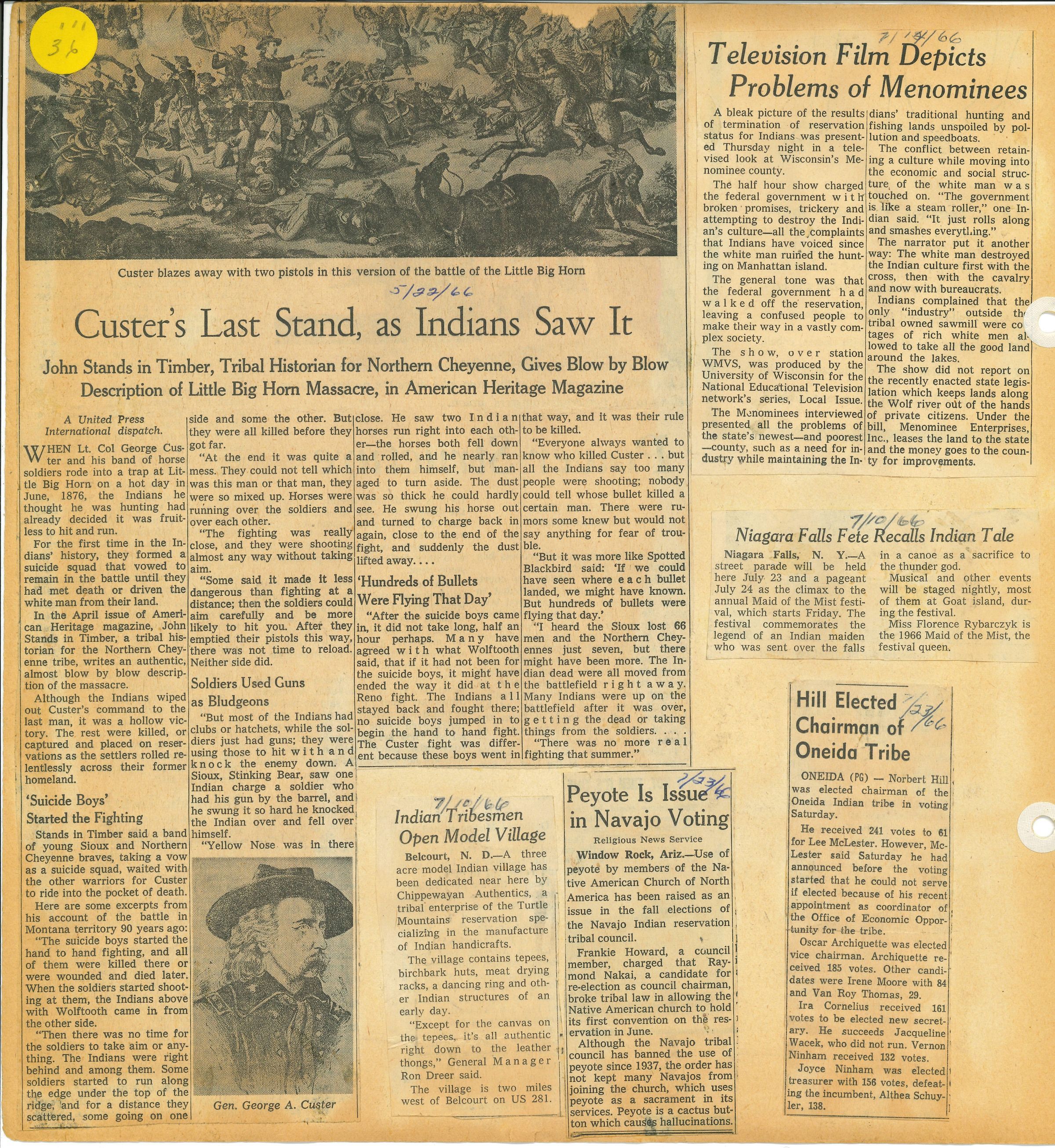 Placed with the Bennett Collection and the box was labeled as Bennett Collection, but unsure if was part of original collection. Only one article mentions Bennett, the rest are misc. Keeping with the entire collection and giving it the accession number A.2001.005.017 as the original was of news clippings and letters, but the years don’t match with any of the original binders in the inventory. May need to change this in the future.Created By