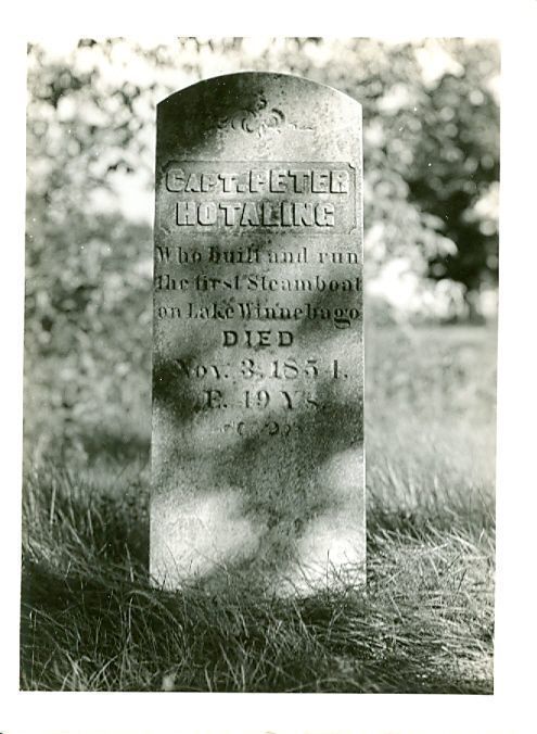 Black and white photo of Capt Peter Hotaling's headstone.